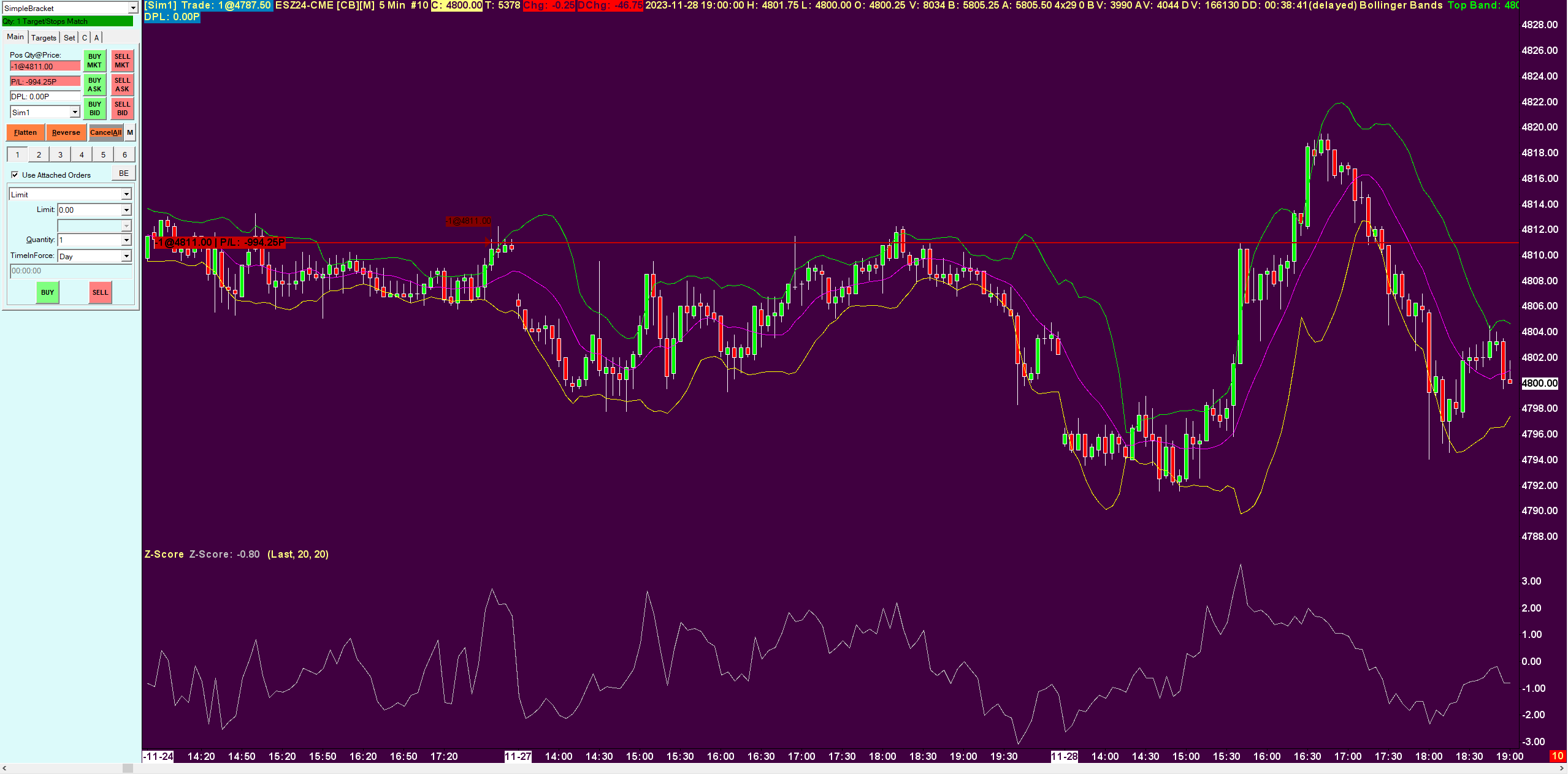 Hi, I am fairly new to Sierra Charts. I created a new 'spreadsheet system for trading' - it only has one sell condition and I am using the 'Simple Bracket' TPSL that is set up via the trade window. However when I run a backtest, as you can see in the screenshots, it only tests a few dozens days before getting stuck in a position and not testing the rest of the data. Please see attached screen. I have a year of data in the chart but as you can see about 2 weeks in it gets stuck in a position that doesn't close and then it gets stuck there and doesn't take anymore trades for the rest of the 200+ days. For clarity, I have 01/10/23-01/10/24 data loaded in and it gets stuck 03/11/23. I changed some settings (such as turning reset conditions on new bar and reducing max number of positions) and as you can see in the second screenshot, it got further, but it did not fix the issue. What is going wrong here? From the two images, I can see that both trades got stuck when the backtest was in a trade when the market gapped up/down due to the fact I have the day session set up. Could that be the problem? EDIT: It was something to do with the gaps, I fixed the problem by including a sell exit condition (buy to cover) that if the bar number = 81 (the 5min ES session is 81 bars) then exit. This has fixed the issue. However it feels like a "fix" not really a solution. Is there a better way to solve this out there? Thank you for your help Date Time Of Last Edit: 2024-10-31 12:22:14