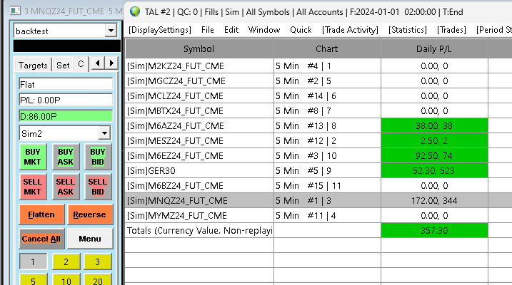 Yes, simulated, because I am preparing complicated functionality with APEX copy trades and 2nd instance with multiple markets etc.. I want to check the functionality. To answer your question: I have attached the mentioned activity logfile. I dont know why I have two of them for Sim2. The specific trade is marked in the above attached gif: Trade MYMZ wrong close price at 13:03:28 MEZ german time: It shows and reckons 42363. But the real price was around 42163. Your post about: "Trade and Current Quote Symbol. ?" chart settings - symbol - "trade and current quote symbol" is empty. So if i understand you right this setting is ok. If you have time for a 2nd issue I thank you a lot. Otherwise I will open a new thread: in my trade window I have twice the SIM2 account illustrated. I opened 1 contract. But the activity log shows and reckons 2 contracts. Do you know what the reason is for this? My Trade copy functionality is not implemended yet. Date Time Of Last Edit: 2024-11-01 17:33:47