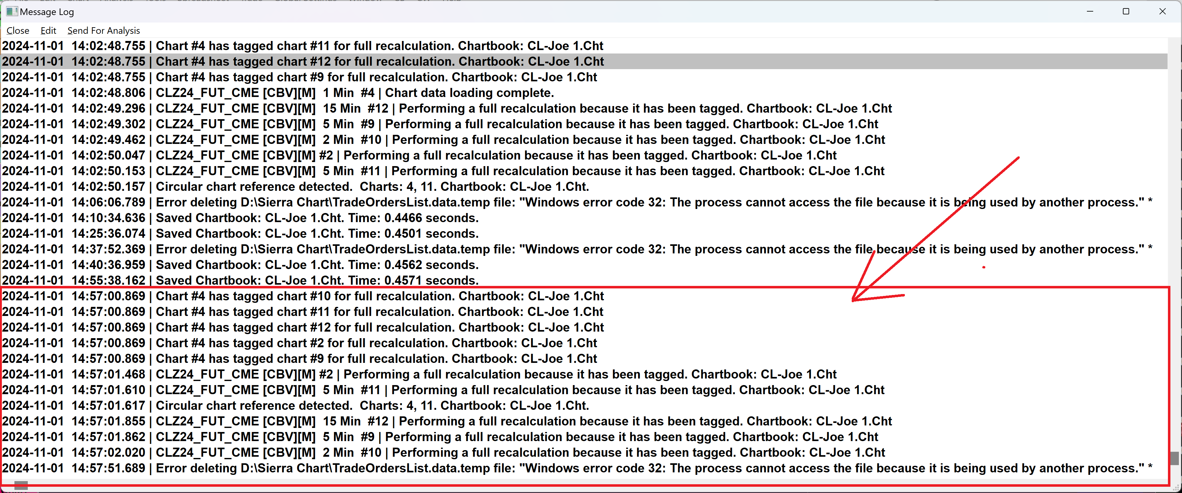 We did answer this already here: error Message pop-up Sierra Chart Support - Engineering Level Your definitive source for support. Other responses are from users. Try to keep your questions brief and to the point. Be aware of support policy: https://www.sierrachart.com/index.php?l=PostingInformation.php#GeneralInformation For the most reliable, advanced, and zero cost futures order routing, use the Teton service: Sierra Chart Teton Futures Order Routing Date Time Of Last Edit: 2024-11-04 19:36:41