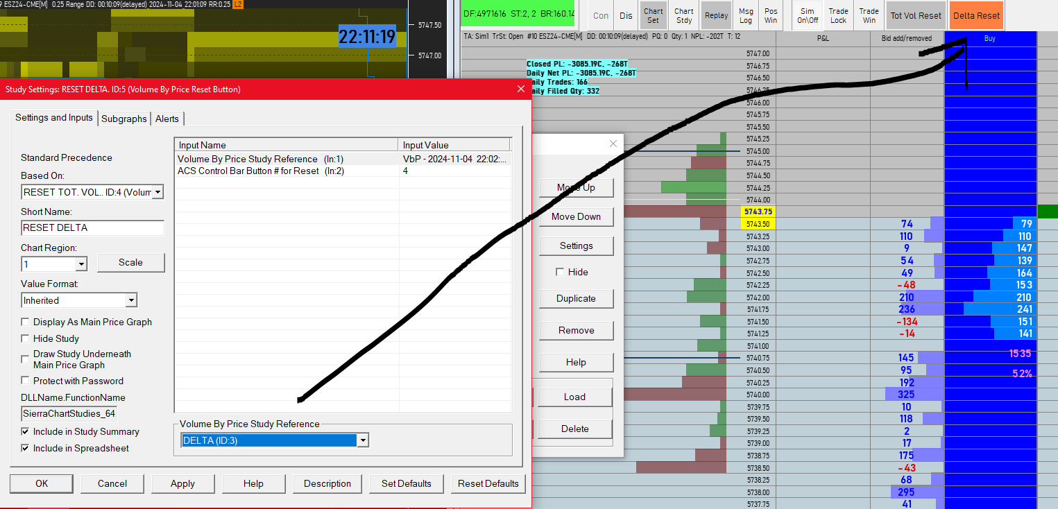 VDB Tot. Vol. = ID 1 Custom Study Button 3 = VDB Tot. Vol. Delta Vol. = ID 3 Custom Study Button 4 = Delta Vol I don't know why, but only the first time I press one of the reset button it properly works. Then, when one of 2 VbP is resetted, if I press one of the buttons both VbP reset. And so on. I just want each button work properly everytime I press it. So, when I manually reset the start time and both VbP are counted from 00:00:00, again, only the first time I press one of the button they properly work. I can send a video to explain everything. |