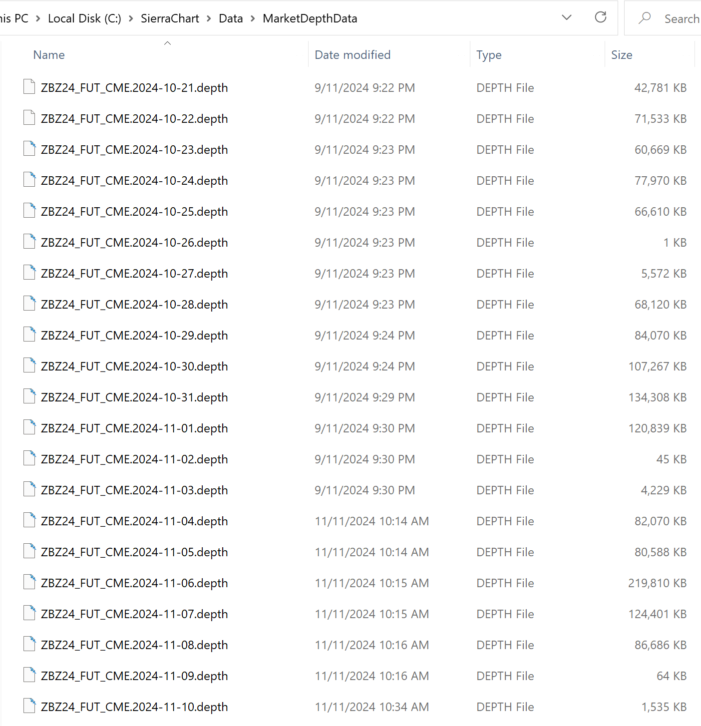 I can also see that the depth data is downloaded because it’s saved in the MarketDepthData folder. See screenshot