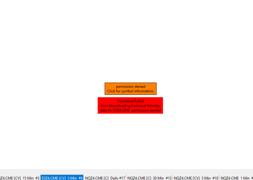I receive data using Teton CME Order Routing/Dorman, when I switch to Rithmic Direct-DTC/Topstep Trader Chicago Non-Aggregated I receive the error "Permission Denied Click for symbol Information"