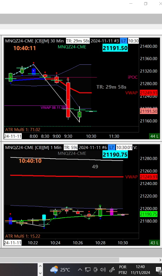 A friend of mine lives in Brazil and has the following problem (unfortunately I cannot reproduce the problem) (see picture) The WIN clock shows the correct time in Brazil. The time zone ‘NY’ is set for the NQ. You can see two clock times in the charts. The clock in the chart header runs 10min10sec behind and the clock from the study ‘Clock - Real Time’ shows the correct timezone time. The recording shows the change of a new candle in M30 and M1 (orientated to the clock in the chart header). What is the problem and what should be done? Many thanks |