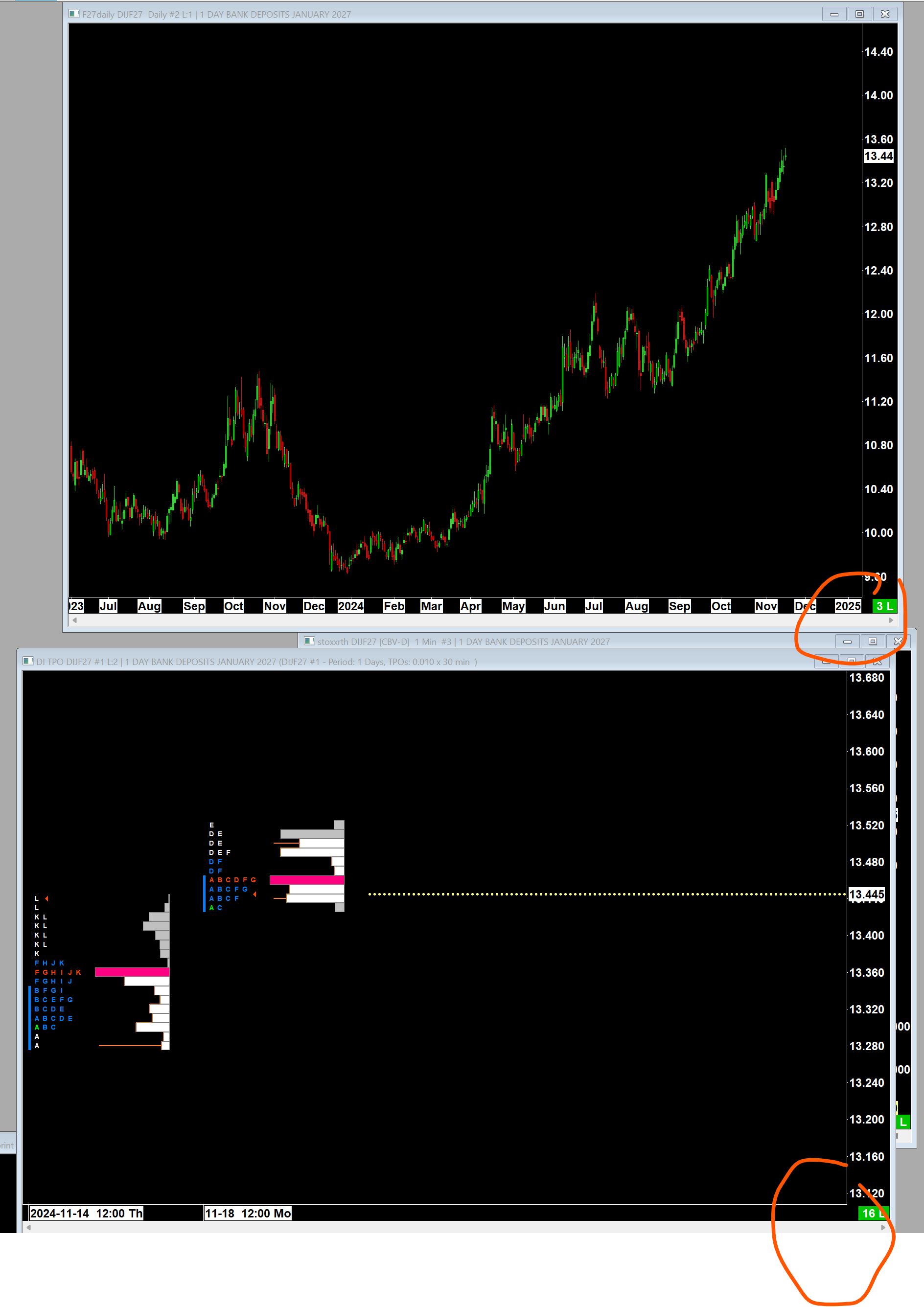this is a stir product, trust me I know what I am doing here. The Jan 25 is now just spot. These contracts go out many many years. You know what a STIR is right? So there is something wrong with tpo settings.I can a plain daily bar chart for this '27 contract and it's fine back 2 years. It is an issue with the tpo.