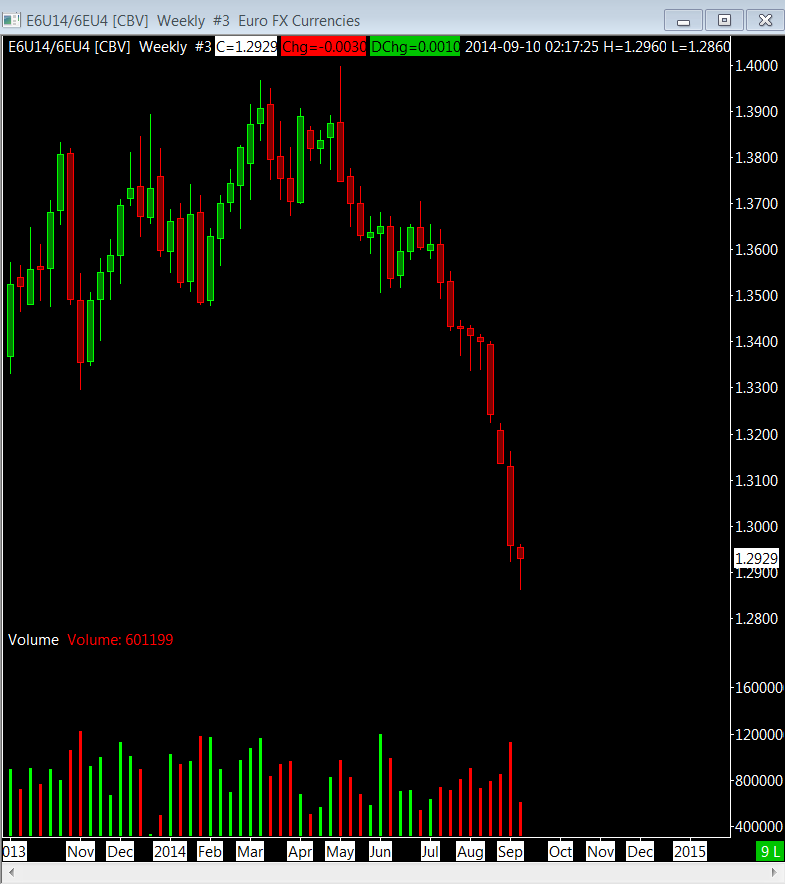 We think that you did not follow through the procedure to re-download the data for all of the futures contract symbols in the chart. The chart looks proper for us: http://www.sierrachart.com/image.php?l=141046121448.png The easiest thing to do is to select File >> Open Historical Chart. Delete all of the E6*.dly files. Press Cancel. Go to the chart and select Chart >> Reload and Recalculate. Sierra Chart Support - Engineering Level Your definitive source for support. Other responses are from users. Try to keep your questions brief and to the point. Be aware of support policy: https://www.sierrachart.com/index.php?l=PostingInformation.php#GeneralInformation For the most reliable, advanced, and zero cost futures order routing, *change* to the Teton service: Sierra Chart Teton Futures Order Routing Date Time Of Last Edit: 2014-09-11 18:48:52