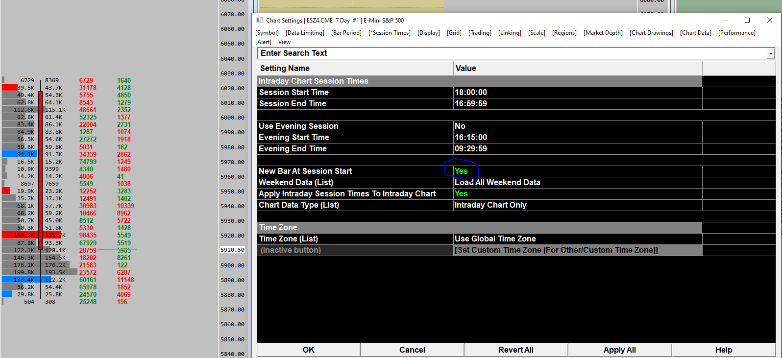 So yes As i showed in the screenshot, the chart starts on 05/02 which is a thursday, however when i change it to the following Sunday, the changes do not stay, it goes right back to 02. and yes, "start new bar" under session times is set to yes in the screenshot When i Hit "apply" to the date to start, it defaults back to the 02 and not from 05 Ideas? pics below |