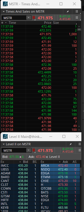 Sharing my 2 cents in case OriolCasas comes back, or for anyone else who is interesting in using SierraCharts for trading equities. The Level 2 window shared in the picture is typical for equities markets, in which retail traders rarely trade on the DOM. As you probably know, the level 2 window for Futures is different, popularly known as DOM, which is why Sierra Engineering/Support finds the version in the picture strange. I will do some investigation to see if I can build something similar for Sierra Chart. Anyone interested can inbox me. Now, to address the big concern in OriolCasas last message. Yes, the consolidated tape displays level 1 data. It is created from Level 1 (highest bid and lowest ask) which is the best Bid/Offer across all exchanges (19+). This is because all exchanges are legally obligated to report each exchange's Best Bid/Offer (BBO) and last trade to a central system (Tapes A B C), that then picks the best Bid/Offer from this BBOs, to create an NBBO which is disseminated to anyone who is interested in what is called a Consolidated Tape. This is what you get in the Consolidated Tape Data Feed. This is the data that shows up when you open the symbol AAPL. This introduces a bit of latency (which IMO is irrelevant and imperceptible to retail traders) because the BBOs have to go to the central system first. If you want a "faster" feed (by a few microseconds), then you could get your Level 1 / BBO straight from any of the 19+ exchanges. Each exchange has different rules about how to get their data. Infrastructure requirements and data formats can also pose a headache. It is expensive and time consuming for a company that builds software for retail traders to incorporate all equity exchanges. So, Sierra has integrated Nasdaq TotalView piped through Denali Datafeed. This supplies the BBO from Nasdaq exchange. This is the data that shows up when you open the symbol AAPL_NDTV. With respect to market depth, there is no centralized system for aggregating this data due to its sheer volume and data processing requirement. The market depth on Nasdaq is available through TotalView. Due to cost and time constraints, it is not practical to get market depth for all 19 venues. The benefit of the data from some venues is not worth the cost. And this is why even on ThinkOrSwim, the number of levels display on the market depth is capped to a maximum. On platforms like DAS and Trader Workstation, you can subscribe to data from other venues like NYSE, but the market depth data from Nasdaq suffices for most of your needs unless you are trading some low float equity that no one cares about enough to trade on Nasdaq. Now, you may be thinking "not all stocks are listed on Nasdaq, and I might not be able to see the data", and you will be wrong. Even though AAPL is listed on NYSE, it still trades on the Nasdaq exchange at significant volumes, and the level 2 data you see from TotalView might even be better than whatever you get from NYSE, because Nasdaq has a technology advantage and operates a decentralized market maker system. This data is what you get when you open the symbol AAPL_MBO. You don't need all 19 venues for level 2. No retailer-focused trading platform will give you all 19. TOS does not show level 2 data from all 19 venues. Bookmap only provides access to Nasdaq TotalView (and they charge $60 per month for it compared with $16 at Sierra). Das charges $150 per month for the platform + totalview. If you want NYSE + Amex, you'd be paying $200+ per month for extra data that may not give you an edge. Only HFTs, hedge funds, and arb shops care about level 2 in the other venues. The ability to display your Level 2 data as a heatmap in Sierra beats the side-by-side table view in TOS. Happy to answer any other questions, and I am also open to corrections. |