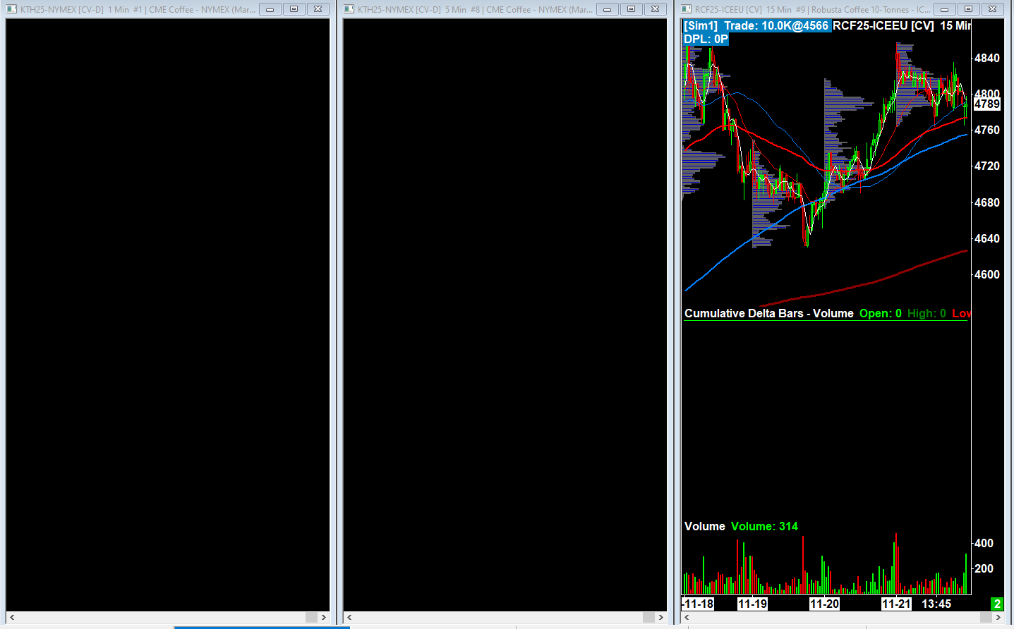 Hi - I"ve had this problem before and never found a solution. No doubt it is something obvious. The screen is black/blank and I can't even right click it (no response). I have tried redownloading the data. I am using a set of copied charts that work fine (it previously had ICEE Coffee) but just not on KT. I believe I have the correct data feeds. https://www.sierrachart.com/image.php?Image=1732252570498.png Any ideas? D Date Time Of Last Edit: 2024-11-22 17:01:43