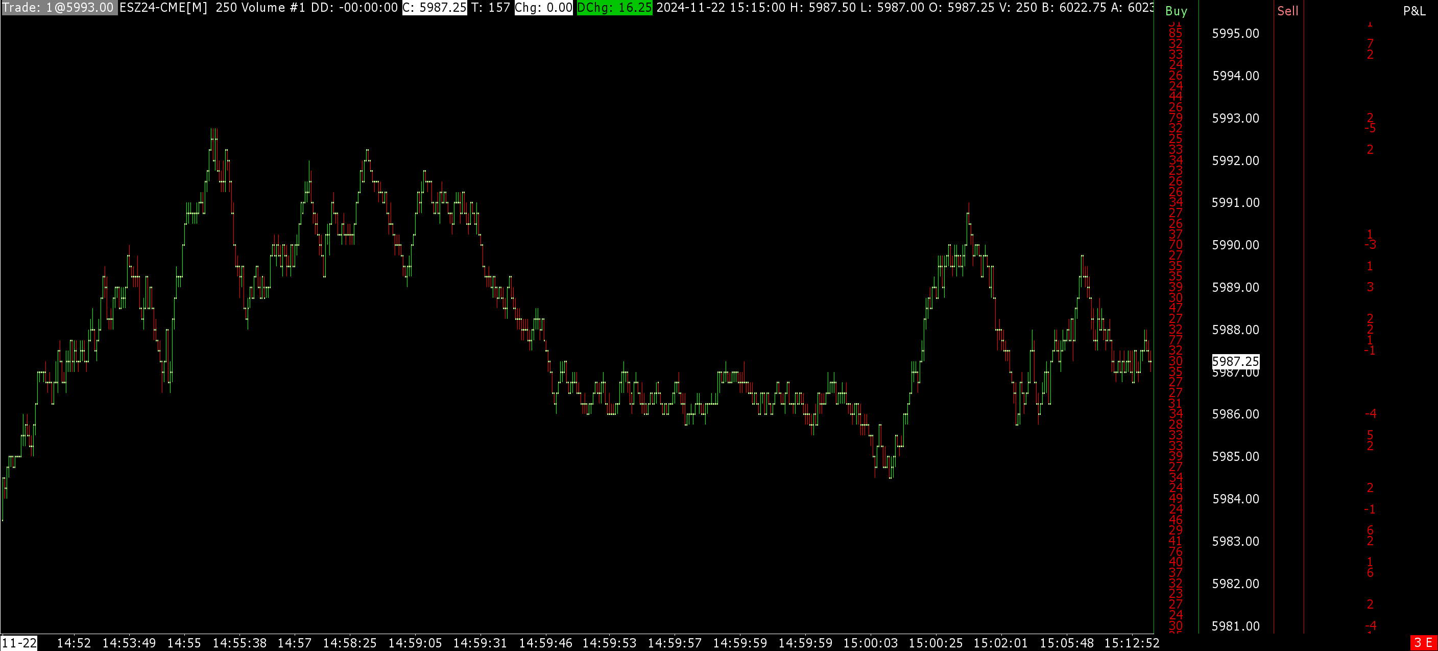 Hello, I downloaded Sierra Chart to my new computer on the weekend, and am missing some data in the minute before 4pm. The previous download would show all of the trades, in very heavy volume, there was no spacing, between the bars. Please see the link below. The session time ends at 16:14:59 I reloaded at my office this morning, as the redownload made loading much, quicker, and it is the same. https://www.sierrachart.com/image.php?Image=1732579905382.png Thanks Martin |