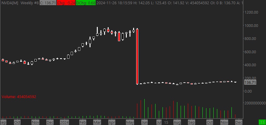 NVDA does not seem to have adjusted for the stock split in the data yet?
