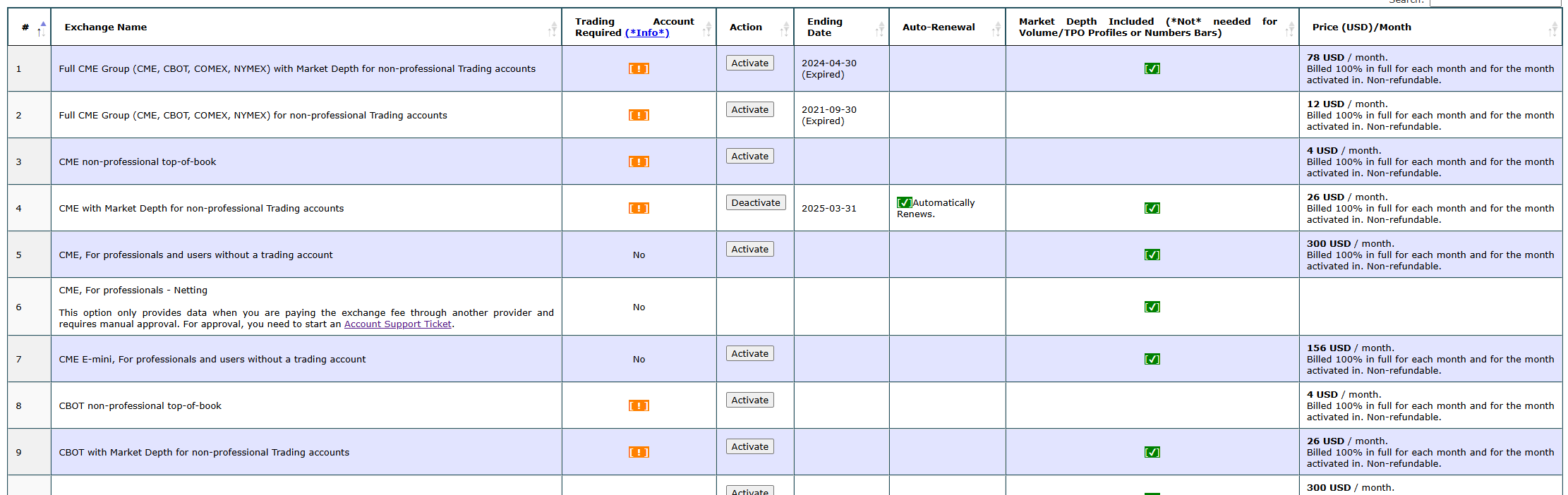 You need to connect to your live, funded, futures trading account. When you do so, your "Verified Until" date updates to 30 days in the future. You can view this "Verified Until" date at the following link: https://www.sierrachart.com/UserControlPanel.php?page=DenaliDataFeed#Exchanges For the CME data, as long as you have an active exchange, your "Verified Until" date is in the future, and your "Global Settings >> Data/Trade Service Settings >> Common Settings >> Allow Support for Sierra Chart Data Feeds" is set to "Yes", then you will be getting the real-time data from us (assuming you have the correct symbol, etc.). For the most reliable, advanced, and zero cost futures order routing, use the Teton service: Sierra Chart Teton Futures Order Routing |