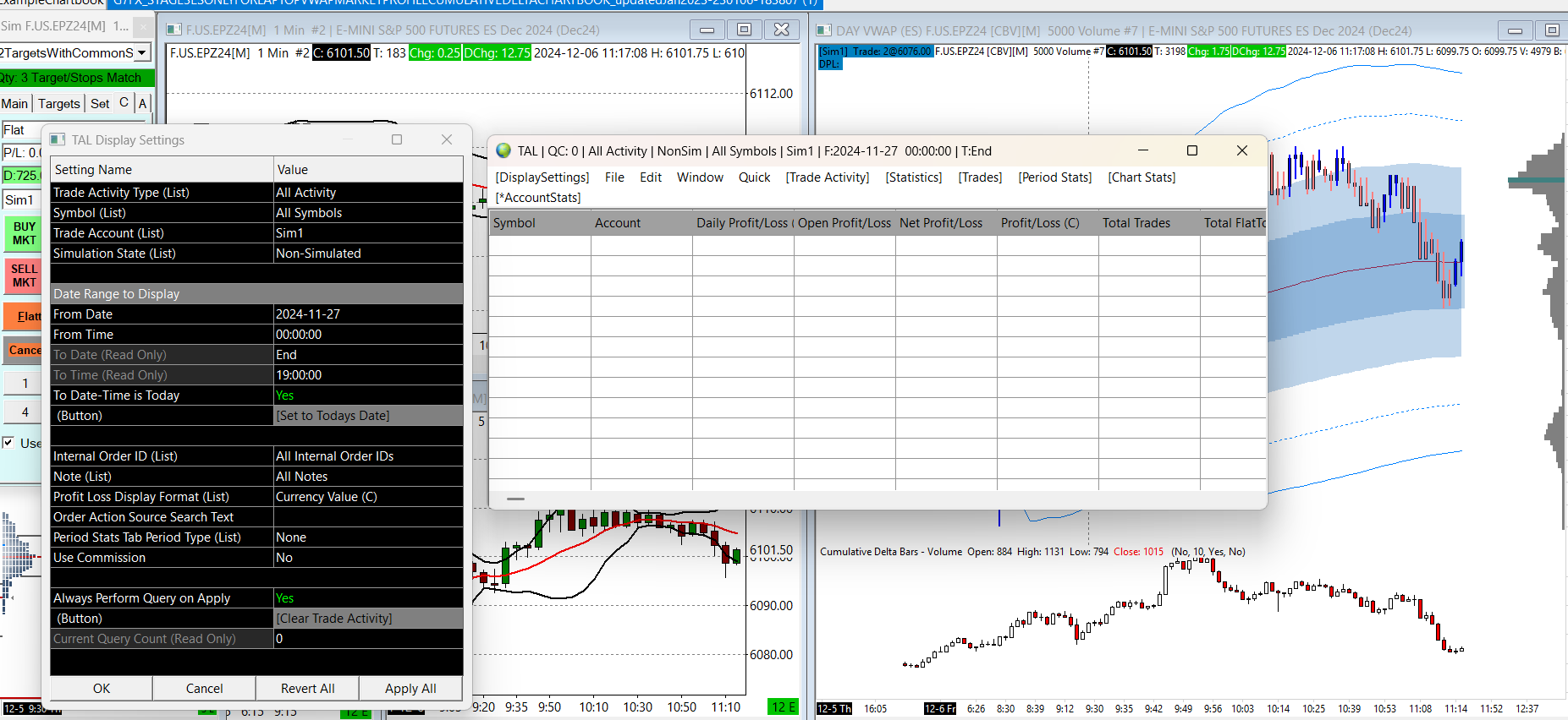 You have the "Trade Account" set to "Sim1", but then you also have the "Simulation State" as "Non-Simulated". There will not be any data for a Sim1 account with non-simulated data. You need to change one or the other for what you want to see. For the most reliable, advanced, and zero cost futures order routing, use the Teton service: Sierra Chart Teton Futures Order Routing |