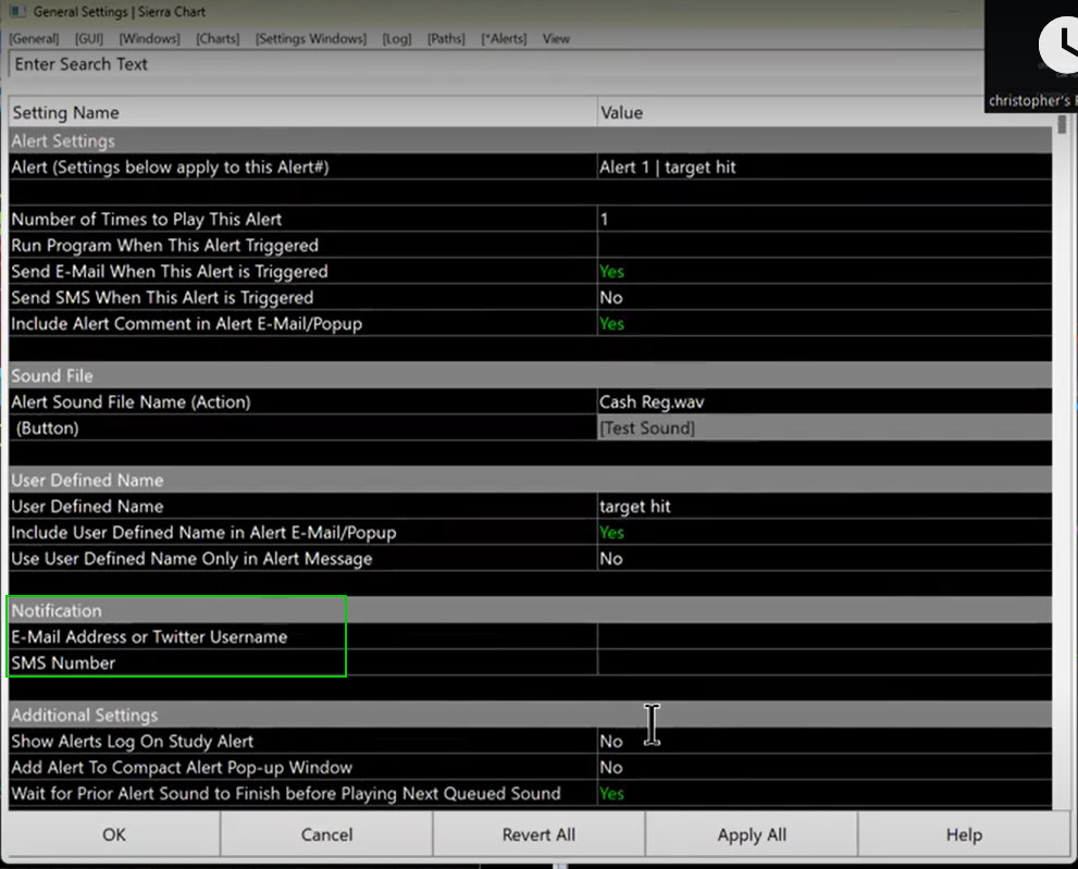 We no longer support the use of SMS or Email for alerts. You can send the alerts to the Chat, which can then be used to forward them to Telegram. Or you can use our Mobile Chat to get the alerts. Refer to the information on the following page: Chat and Communications Platform For the most reliable, advanced, and zero cost futures order routing, use the Teton service: Sierra Chart Teton Futures Order Routing |