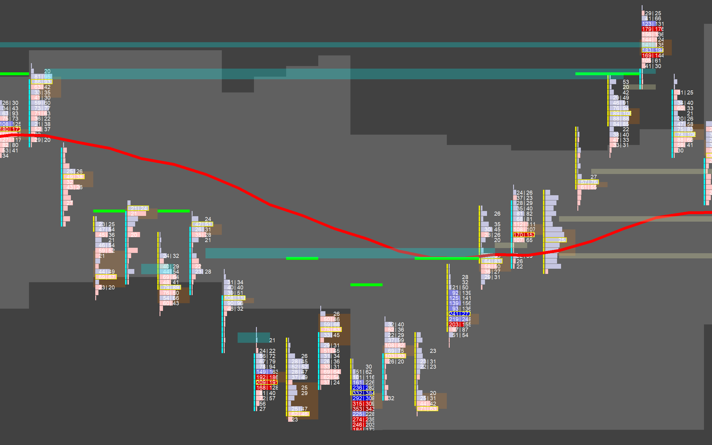 Hi everybody, I am stuck (perhaps a very simple solution, but I am new to this). I am trying to retrieve the lines drawn by the Volume at Price Threshold V2 study. take those lines and draw the one (anyone) on the chart, which is within 4 points from the bar (top of the bar in case of an upbar in my example). Some lines are drawn correctly, others are not shown at all. This make me conclude that either I am accessing the struct with the stored lines from the VAP study incorrectly, or there lines from the study are stored at another location and I am pulling the incorrect lines. See picture below for the results with the code as per below My custom study is trying to access the data from study 4 (which is the VAP thresholdV2 study that creates the Green lines in the picture). All help is very much appreciated if(sc.GetBarHasClosedStatus() == BHCS_BAR_HAS_CLOSED) { int LineIDForBar = 0; int StartIndex = 0; int LineIndex = 0; float LineValue = 0; int EndIndex = 0; auto numLines = sc.GetNumLinesUntilFutureIntersection(1, Input_LineT.GetInt()) - 1; for (int LineIndex = 0; LineIndex < numLines; ++LineIndex) { sc.GetStudyLineUntilFutureIntersectionByIndex(sc.ChartNumber, Input_LineT.GetInt(), LineIndex, LineIDForBar, StartIndex, LineValue, EndIndex); if ( EndIndex == 0 && UpBar[sc.Index] == 1 && sc.High[sc.Index] < LineValue && LineValue - sc.High[sc.Index] < 4 && LineValue - sc.High[sc.Index] > 0 ) { Subgraph_BreakOutDown[sc.Index] = LineValue; } } } Date Time Of Last Edit: 2024-12-19 09:39:53