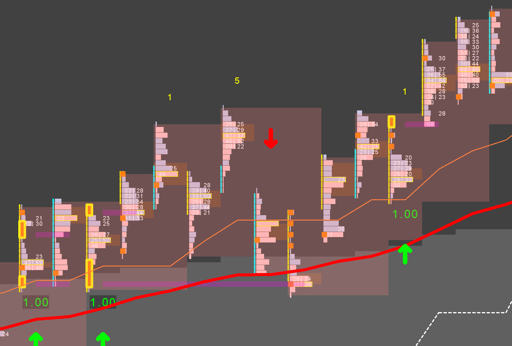Hi Everybody, I need serious help from ACSIL gurus as I cant figure out how to make a vector persistent. I want create a vector that holds the values (lines) of imbalances that are still not crossed, so I can calculate with them later and access them quicker rather than doing a for loop in sc.GetStudyLineUntilFutureIntersectionByIndex. So I created the vector (std::vector(....), the code does the calculations correctly, the vectors stores the values of the lines I want stored. BUT then on the next cycle(Bar) (i have autoloop set to true). the vector is empty(?) and refills them with the values found in on that Bar (if any). I know this because I have the size of the vector printed on every bar (see picture). it is not a consecutive number ( size of vector for bar n adding to the value of bar n-1), but a size only true for that bar. every bar show 1 instead of 1 ... 2.... 3 (adding the number of found lines of that bar to the vector). So long story short. How can I make the vector persistent so the new found values of the current bar are added to the vector of the previous bar? Date Time Of Last Edit: 2024-12-24 11:21:25