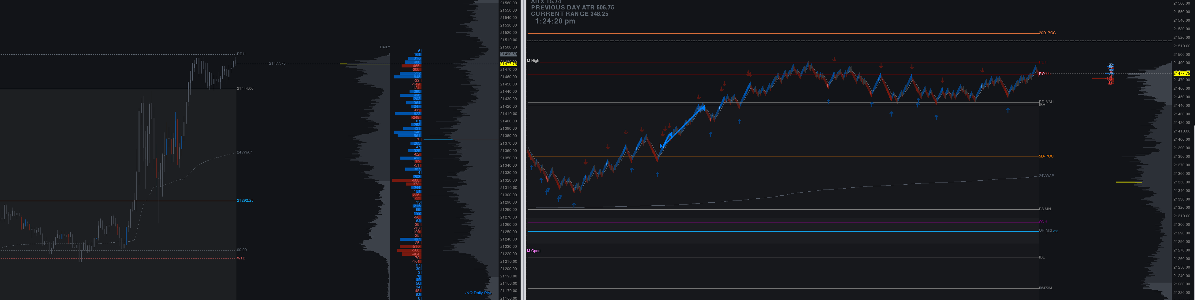 i have daily volume profile on my execution chart (flex renko) and on my reference chart 5 min. both have the same settings but the POC is somewhat not in sync. attached are the two photos. one in flex renko and one on 5min. both have volume profile but POC are different. |