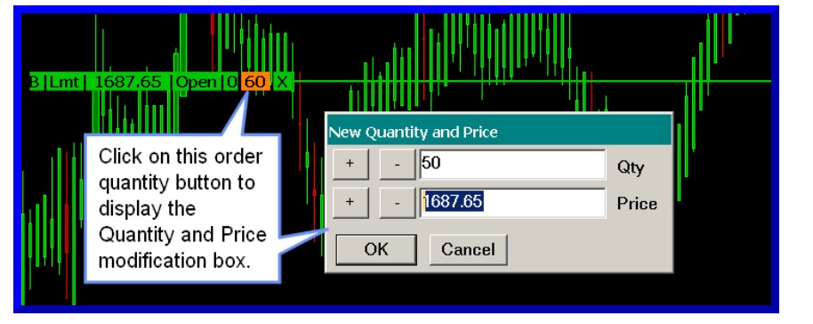 Order quantity modification from chart window