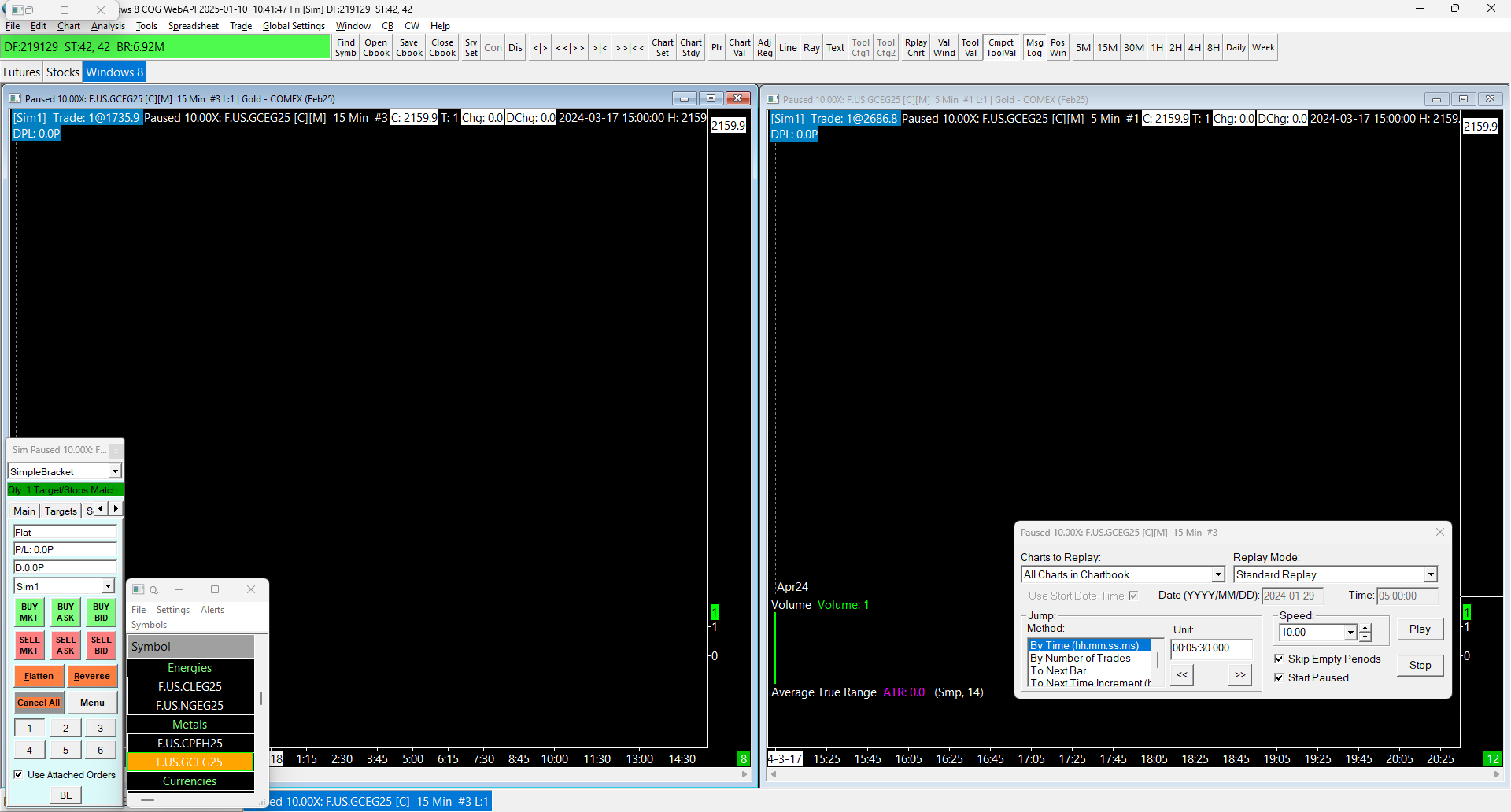 Hello I am trying to replay the chart over a year ago and each time I hit start nothing is loading. I put on the continuous contract, I changed the number of days to load to 300 and still nothing.