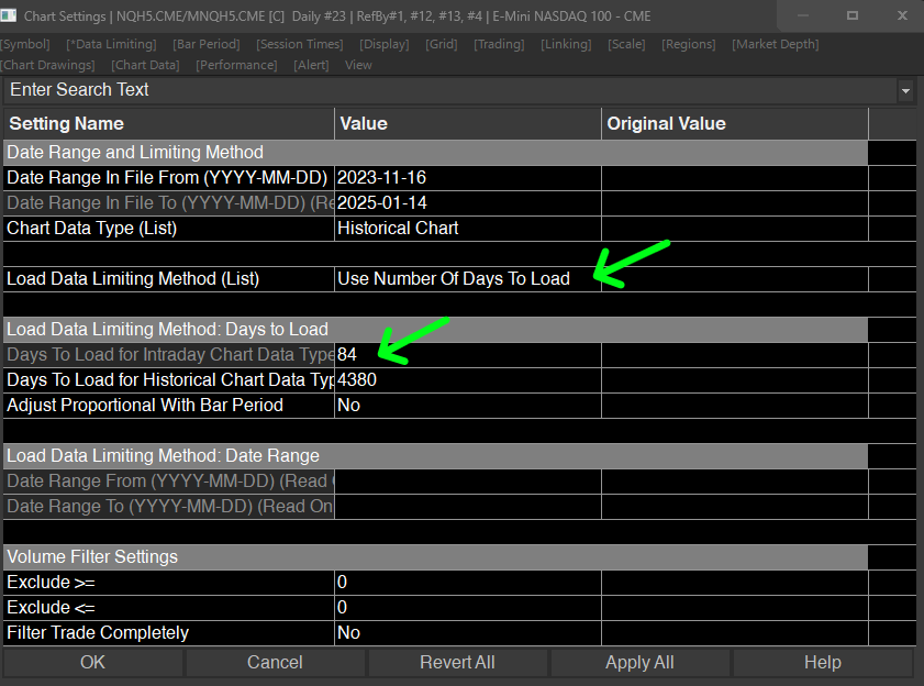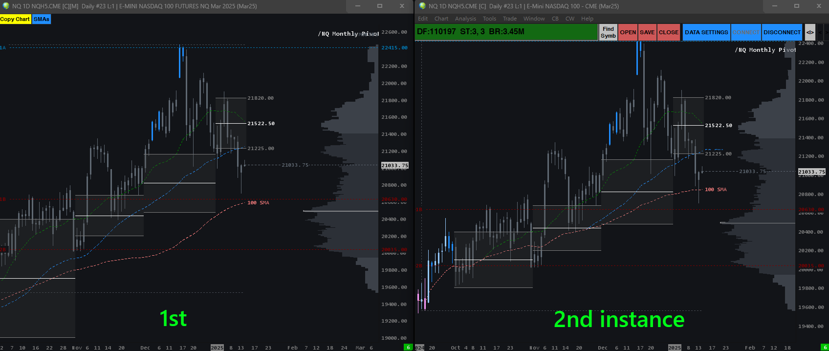 how can i make the 2nd instance chart to load the same historical data like like the first one? chart data is already set to historical load data is set to use number of days to load and the days of historical data to load is set to 4380 and yet the chart doesn't load the historical data |