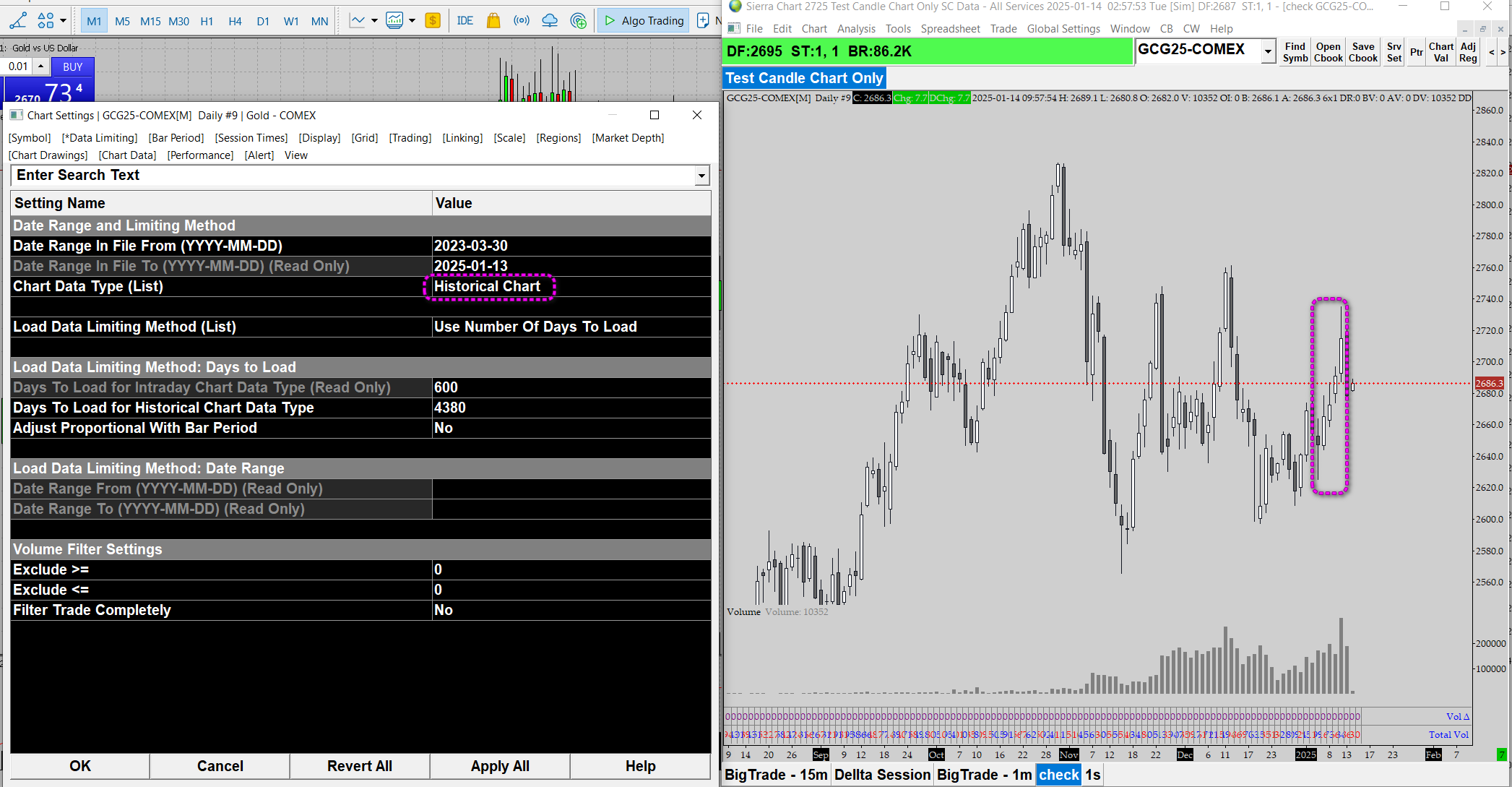 Dear Support, I noticed there are different daily candlestick charts for "Historical Chart" and "Intraday Chart". Why is there a difference? The candles for "Intraday Chart" are more accurate than "Historical Chart", right? "Historical Chart" can display more candles than "Intraday Chart". Can "Intraday Chart" display 4000 candles? Here is the attachment for the 2 cases Thank you. |