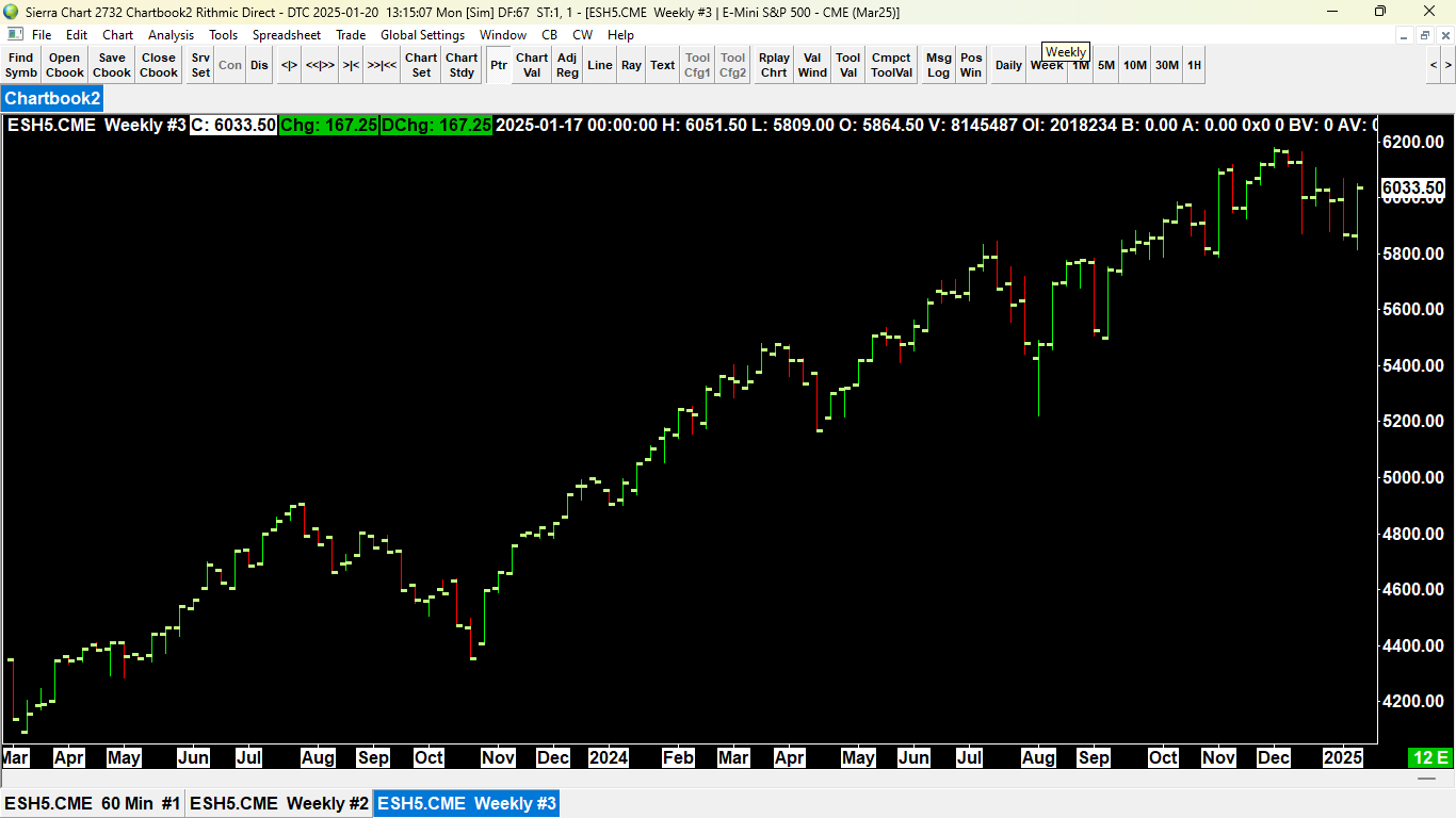 Hi, I wanted to see if I could get some help with my current issue. My futures charts such as es,only seem to load higher time frames like the weekly and daily but wont load for my lower time frames(1min-1 hr). While all my other symbols like forex seem to working just fine. I have the #12 package for sierra and bought a funded account through topstep including their lvl 2 data. When I try to load es or other futures contracts in lower timeframes the price scale and the time scale both disappear, and dont show up later no matter how long i wait. The link I have posted below are screenshots of what my screen looks like the first is aud/cad on the 1 min time frame and the 2nd is es on the same time frame. Notice how the second shows nothing but a blank screen, that is how mines looks every time i try to load up any time frame from 1 min to 1hr. https://www.sierrachart.com/image.php?Image=1737398126164.png https://www.sierrachart.com/image.php?Image=1737398167578.png Troubleshooting i've done *Disconnecting and reconnecting data feed *Deleted all data and download from the edit drop down menu *Set my storage to ticks So this is where i'm currently at right now, if anyone can help id really appreciate it I'm just trying to get my money's worth. |