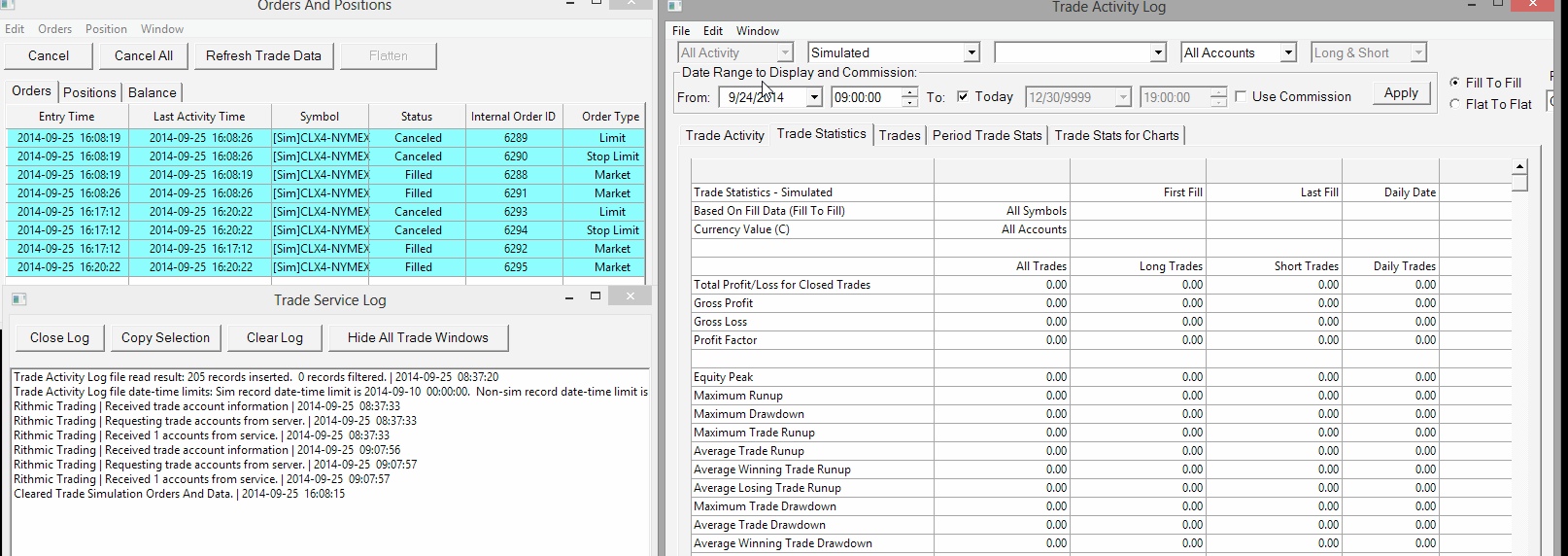 After placing and closing SIMULATED trades the Activities Lof for Simulated trades is blank. How can I get a simple r3ecord of the buys and sells that were made? Fred |