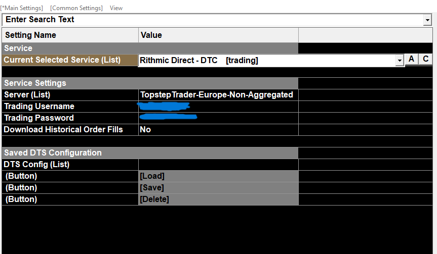 Good Morning, I am trying to connect with Rithmic data. When I go to File -> Data/Trade Service Settings -> Main Settings, I am able to select Rithmic Direct - DTC [trading] as the current selected service. Underneath in the service settings I can select my server and enter my trading account details but I do not have the fields to enter my Market Data or Historical Data usernames or passwords. I have attached a screenshot in case this is unclear. I have updated SC, restarted etc... but haven't been able to find a fix. I don't think this is a problem with Rithmic but I'm not certain. My charts all come up blank, presumably because they have nowhere to pull the data from. The charts and data function normally in the Rithmic software. Thanks for your help. |