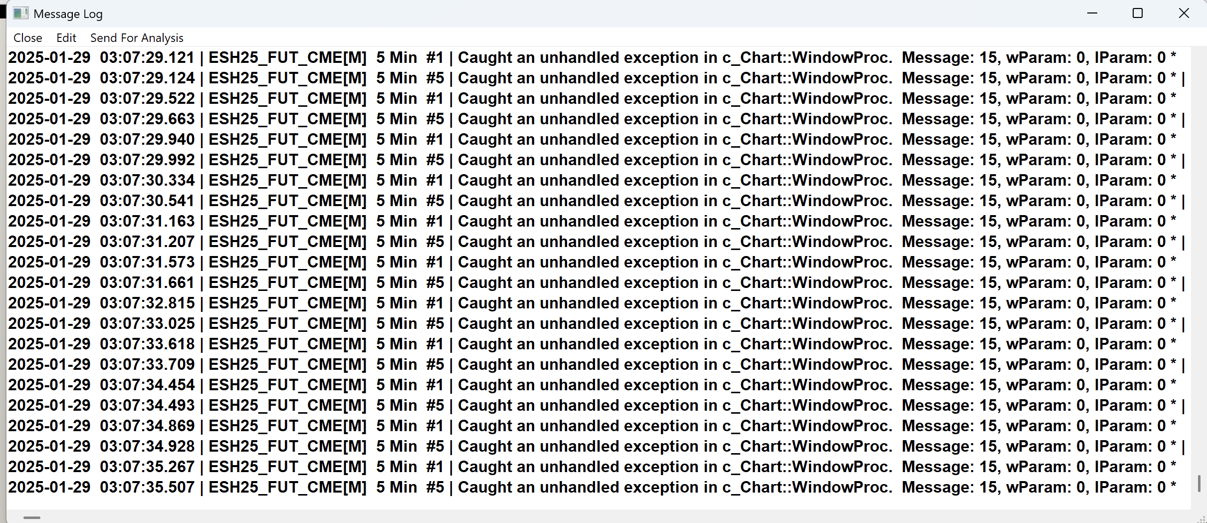 We need to get, that #1 and #5 charts in that particular Chartbook from you. Instructions: Support Board Posting Information: Providing Chartbook with Only a Single Chart Sierra Chart Support - Engineering Level Your definitive source for support. Other responses are from users. Try to keep your questions brief and to the point. Be aware of support policy: https://www.sierrachart.com/index.php?l=PostingInformation.php#GeneralInformation For the most reliable, advanced, and zero cost futures order routing, use the Teton service: Sierra Chart Teton Futures Order Routing |