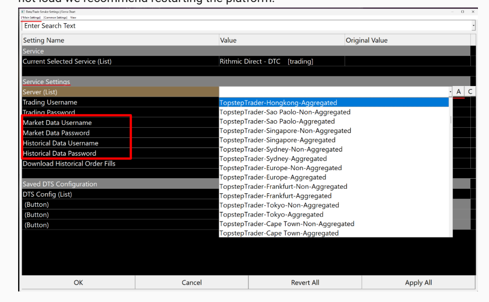 I am unable to select TopStep from this drop down list, it is completely empty. I have the Denali Package 12.