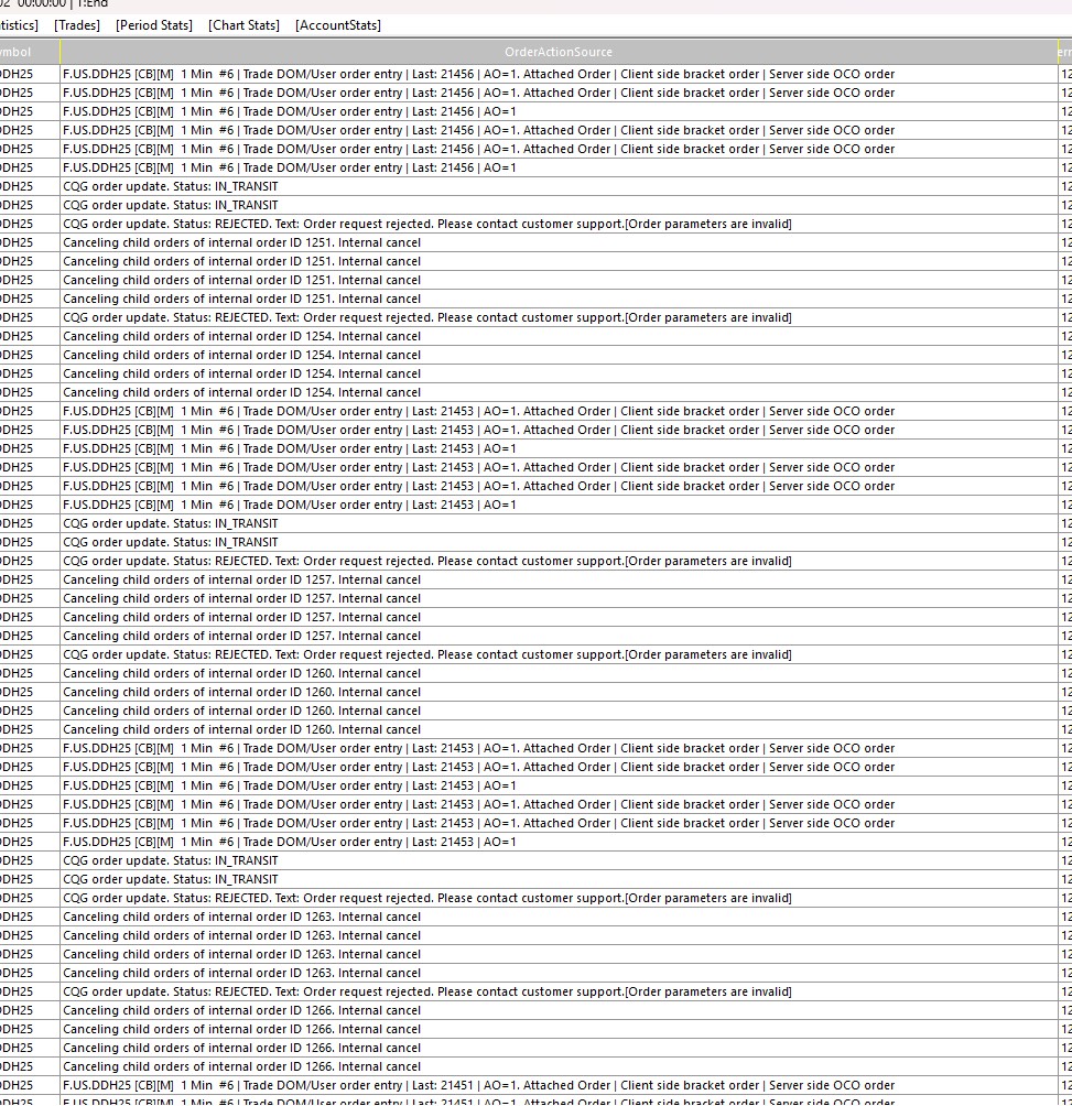 Hello, I started live trading about a week ago and it is working very well for the F.US.ENQH25 and F.US.YMH25. In additiion, I'm trying to trade the German DAX F.US.DDH25. The live trading window is red. When I enter a trade, the trade shows up for a split second but then disappears.I'm trading using CQG Web API. Please help :) Heiner |