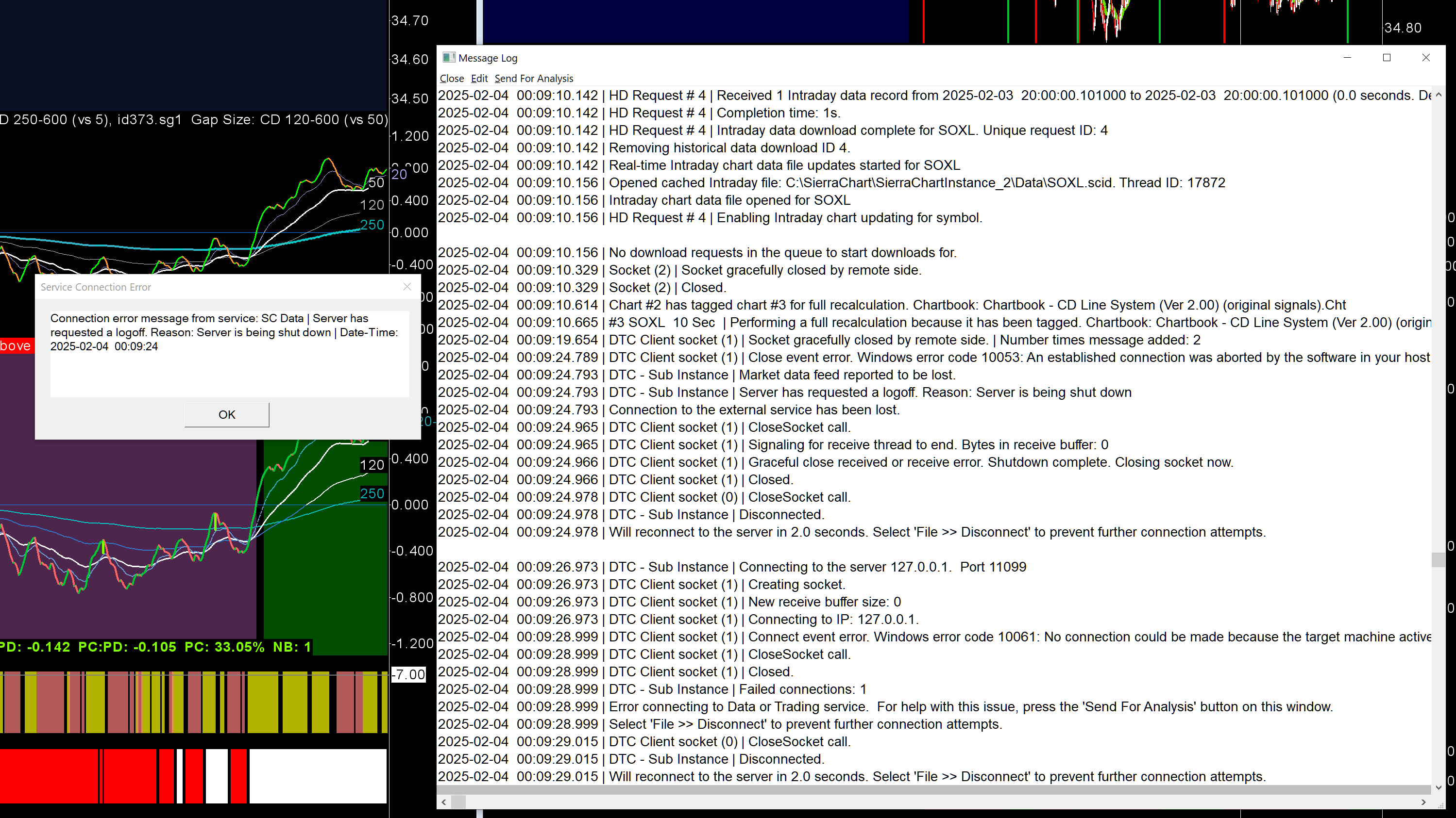Not sure why it's acting like this now. Never had an issue before. I updated all instances of SC to the most recent Current Version. The only way I can connect to data on the sub-instance is by first connecting to data on the main instance. Previously I didn't need to turn on the main instance and could just run the sub-instance independently. When I disconnect from the data feed on the main instance, I get a popup error message on the sub-instance, which I took a screenshot of and attached. |