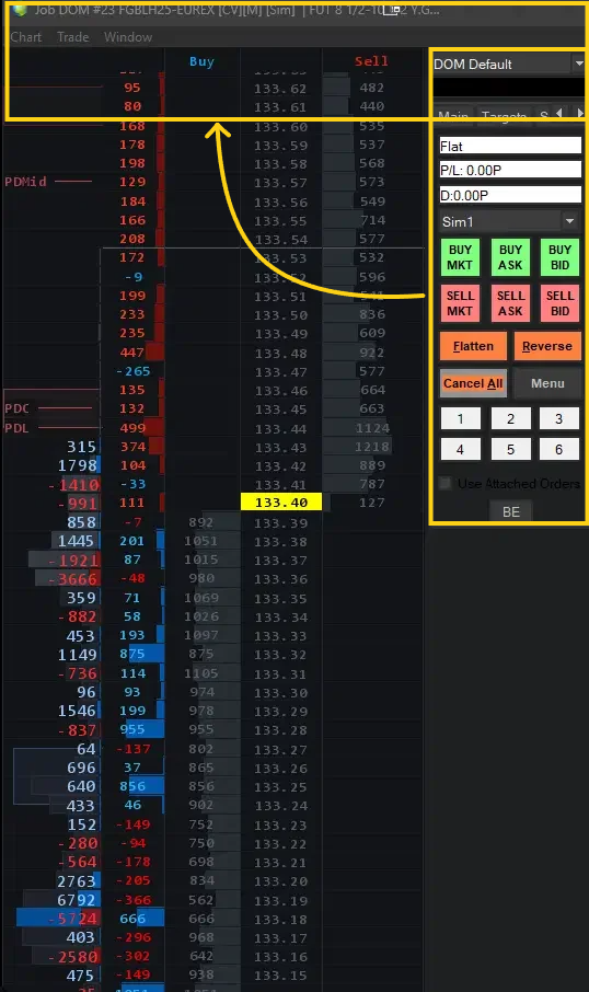 Not directly. But most of the functionality for the Trade Window has been replicated in Control Bar options. So you can create a Control Bar that you can put at the top of the Trading DOM that has the Trade Window functionality you are looking for. Refer to the following: Control Bar For the most reliable, advanced, and zero cost futures order routing, use the Teton service: Sierra Chart Teton Futures Order Routing |