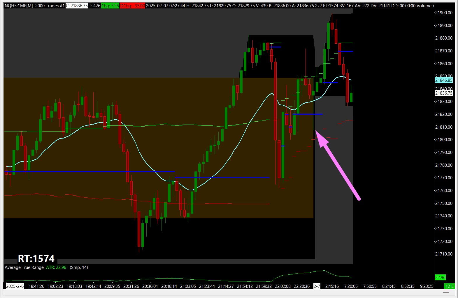 Hi! I have a Number of trades per bar chart. On the attached screenshot you can see that the bar that I'm pointing to is registered as previous day (as it started forming on the previous trading day), but then it finished in the next day. How can I make it so that the bar from they day before is closed regardless if the required number of trades has been done? In other words I want the count to reset at the beginning of each new day. Thank you in advance! |