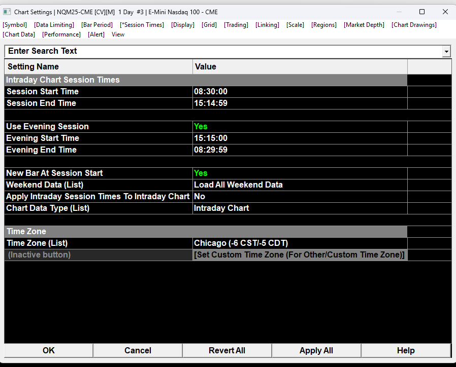 If you have the session times, properly set where the trading day starts in the prior day.You really have to use Historical Daily charts for what you want. Sierra Chart Support - Engineering Level Your definitive source for support. Other responses are from users. Try to keep your questions brief and to the point. Be aware of support policy: https://www.sierrachart.com/index.php?l=PostingInformation.php#GeneralInformation For the most reliable, advanced, and zero cost futures order routing, use the Teton service: Sierra Chart Teton Futures Order Routing Date Time Of Last Edit: 2025-02-11 04:36:23