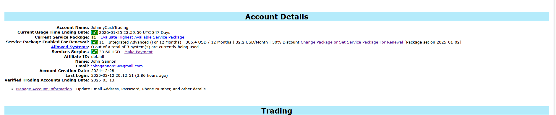 The only relationship between the package and the data is that you need to be on one of the "Integrated" packages in order to be able to access the data, which you are. Therefore, there is nothing you need to change. You just need to setup the data. Follow the instructions at the following link to setup and activate and pay for, the exchange you want for the CME Group: Denali Exchange Data Feed: *Setup Instructions: CME/CBOT/NYMEX/COMEX Exchanges* For the most reliable, advanced, and zero cost futures order routing, use the Teton service: Sierra Chart Teton Futures Order Routing |
