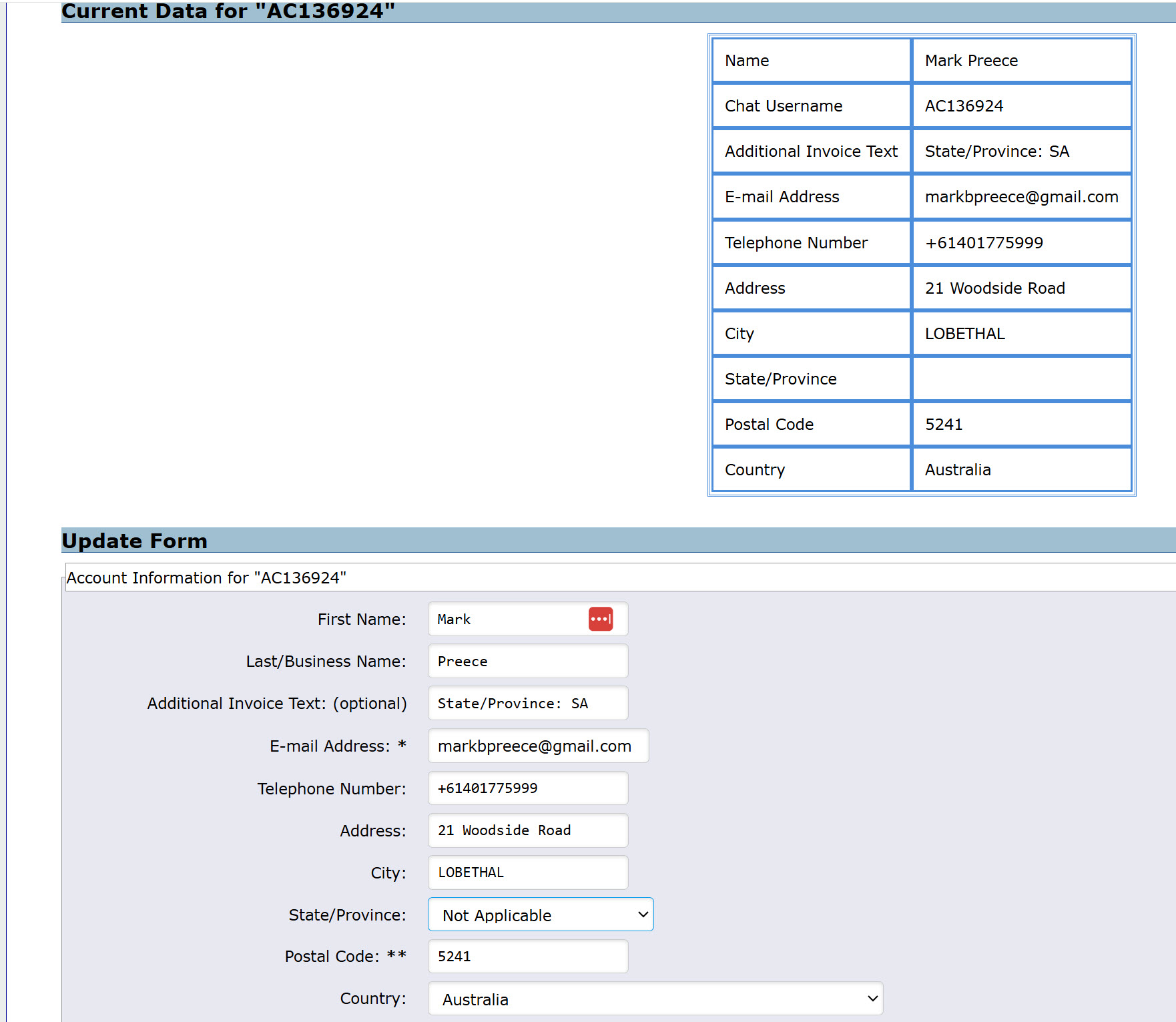 I am requested to update (fully complete) my contact details. How do I resolve this issue of a blank State/Province field? See 2025-02-14 11:16:56 thread. |