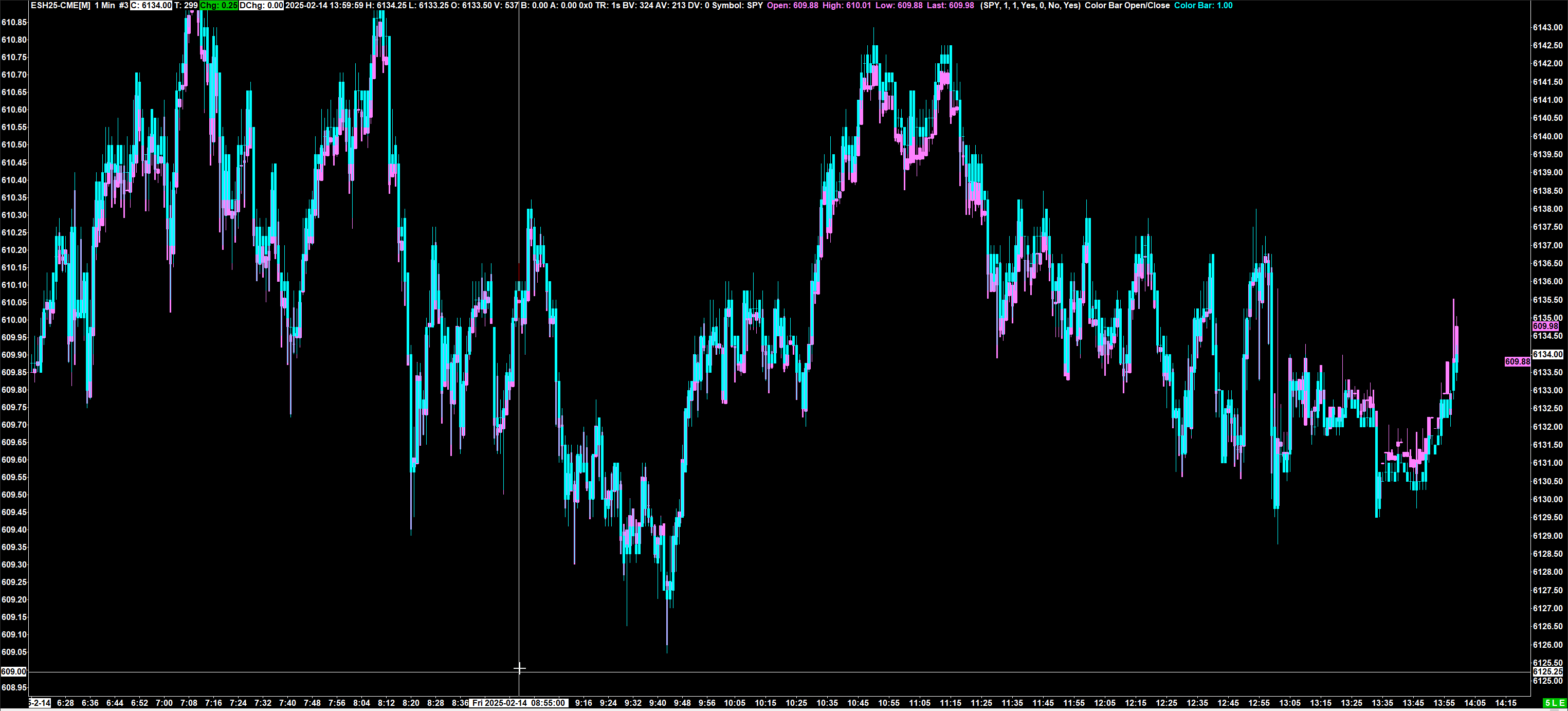 Looking for a quick way to link relationship between two symbols ie. YM/DIA, ES/SPY, RTY/IWM etc. See attached chart. Right scale ES closing price is 6134. Left scale SPY closing price 609.88. I can adjust the two charts to get an approximate overlay so I can see quickly that SPY 609 = ~ ES 6125 Is there a way to lock the scales in relationship so when I adjust right side left side will keep the relationship? Also thought about using the Study Subgraphs Divide/Ratio between SPY/ES but still need a way to link/lock the scales together. Or another method of displaying relationship I'm not aware of? |