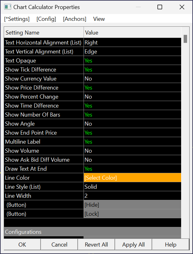 I utilize chart calculator tool with vertical alignment 'Edge'. Once I have updated to version 2737 part of the label text is off the screen. I have revered to version to 'Previous Version' 2726 and it works fine again. The settings of my tool are this: Here is the image showing it working fine in version 2726 https://www.sierrachart.com/image.php?Image=1739794420255.png Here is the image showing it in version 2741 where it is cut off https://www.sierrachart.com/image.php?Image=1739794541607.png Horizontal Alignment (List): Right Vertical Alignment (List): Edge Text Opaque: Y Show Tick Difference: Y Show Currency Value: N Show Price Diff: Y Show Percent Change: N Show Time Difference: Y Show Number Of Bars: Y Show Angle: N Show End Point Price: Y Multiline Label: Y Snow Volume: N Show Ask Bid Diff Volume: N Draw Text At End: Y Line Style (List): Solid Line Width: 2 |