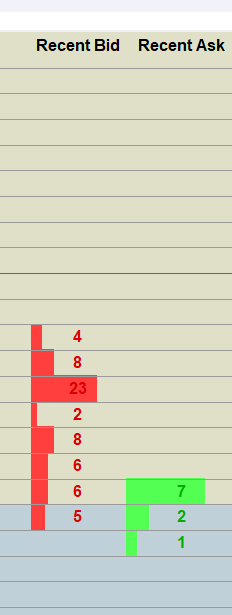 These bars do not accurately represent correct size. Please see recent bid 23 vs recent ask 7. The 23 should be at least 3x width of 7