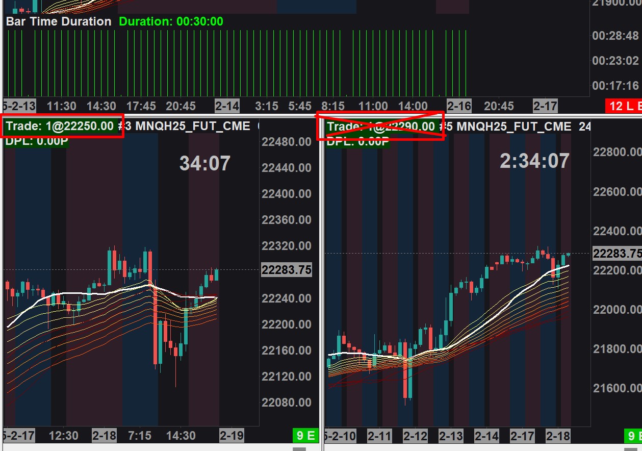 I am starting to compact my charts to get as much info as possible and this (Trade:1@222275.60) takes up so much of the menu bar. I never look at this but there is info to the right in this menu bar that i would rather see. Is there a way to remove this highlighted area or adjust the data so its at the end? |