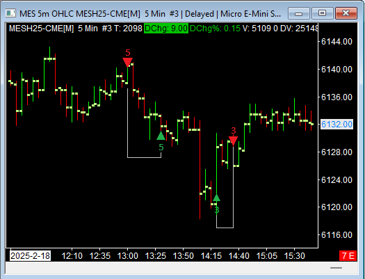Is there a study built into SC that will draw markers or order fills as a number onto an intraday chart based on one's trade history? The position indicators are there for pending/open orders, but they disappear once I exit a trade. I am looking for a chart study that will draw all the trades I took over the downloaded data period. I've seen this on other platforms, so I think people find it useful. I've attached a mockup to give you an idea of what I am looking for. If there is no built in study, would this be possible as a custom study? Thanks! |