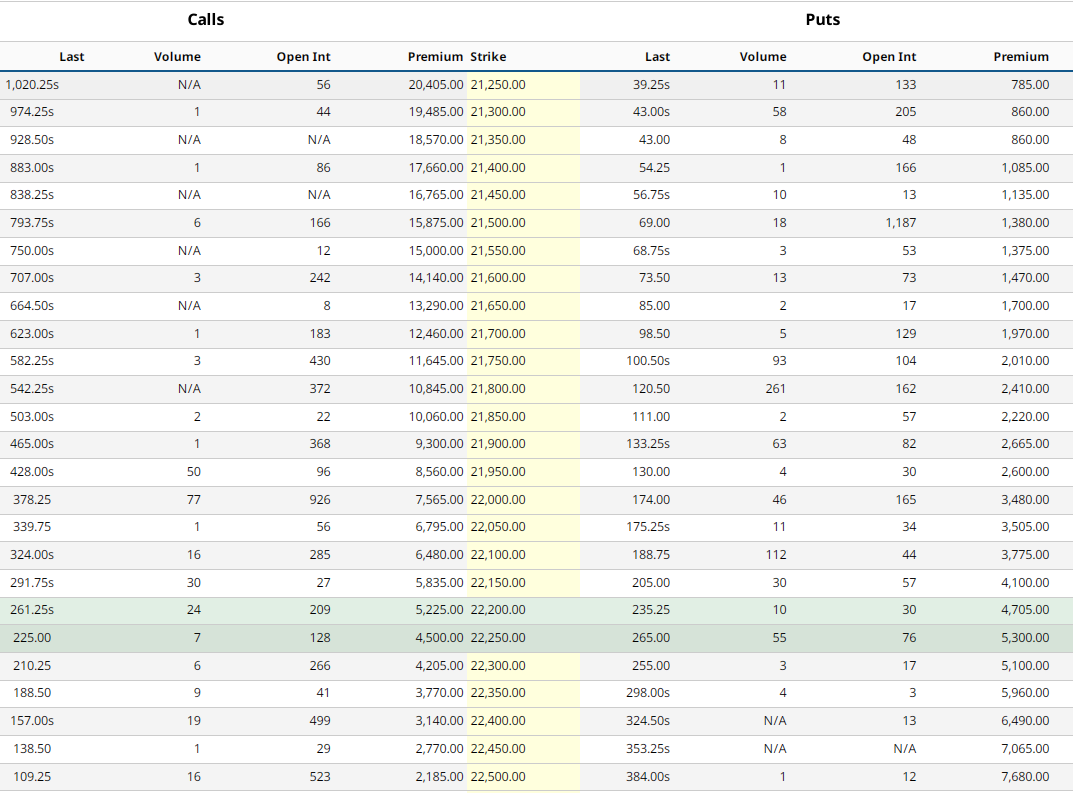 options chain in SC