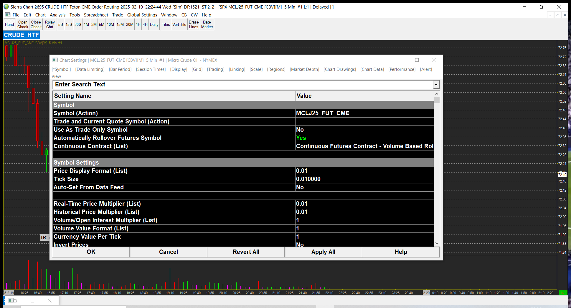 Hey, I have a problem with WTI Oil contract. My data is delayed despite the Denali Exchange Data Feed being active. I do not have this problem with other symbols. I add a screenshot so you can see the data. https://www.sierrachart.com/image.php?Image=1740000286344.png |