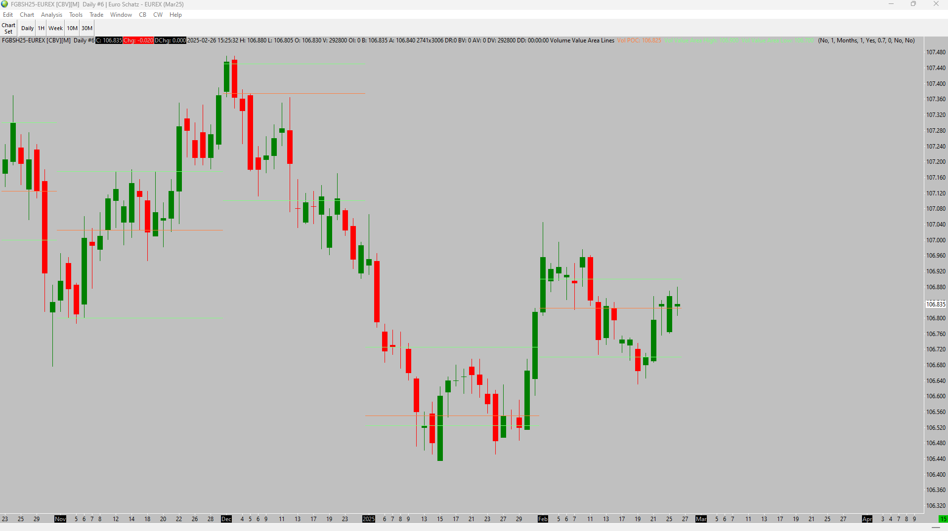 I've got a custom study that plots all previous months' (as well as current month) volume value area highs and lows as well as point of control on a regular candlestick chart. However, when I changed timeframes from a Daily to a 60m, the prices of the VVAH, VVAL + VPOC changes. I've compared this to a regular volume profile chart and sometimes the daily chart has correct figures (when compared to volume profile chart), sometimes the 60m is correct and sometimes neither are correct. Would be very grateful if someone could help with this. Screenshot attached for reference (vpoc in orange, vval/vvah in green) - not sure if I uploaded images correctly so please let me know if not. Thanks |