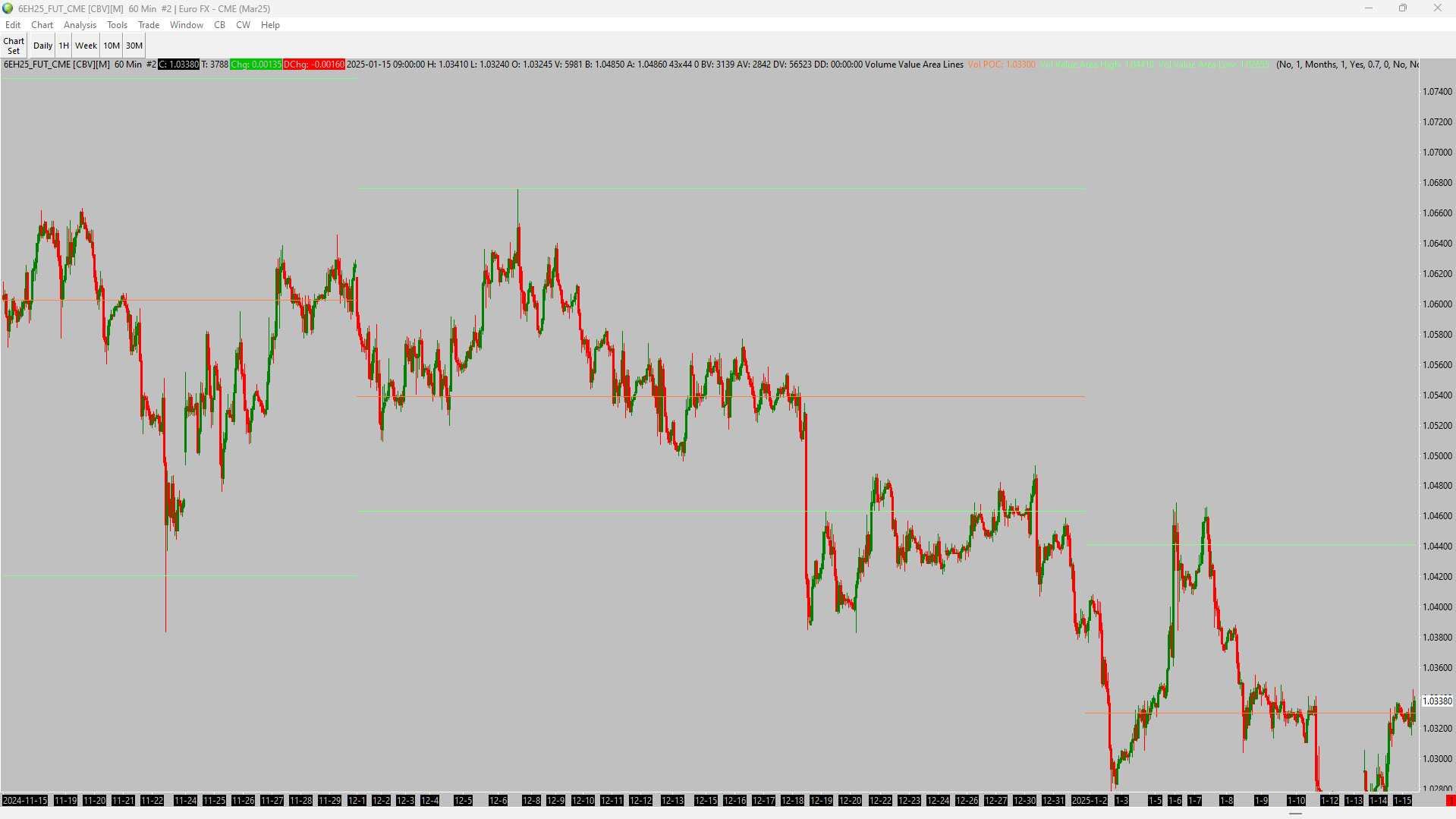 Ok thanks that works perfectly. One more thing however, the plotted lines still seems like it could be off. I've attached screenshots of the Eur/Usd. Notice on the candlestick chart for December 2024 the VVAL is at the very high of the month at 1.06760 The high on the monthly profile chart for Dec is 1.06420. Any help on this would also be appreciated :) Thanks |