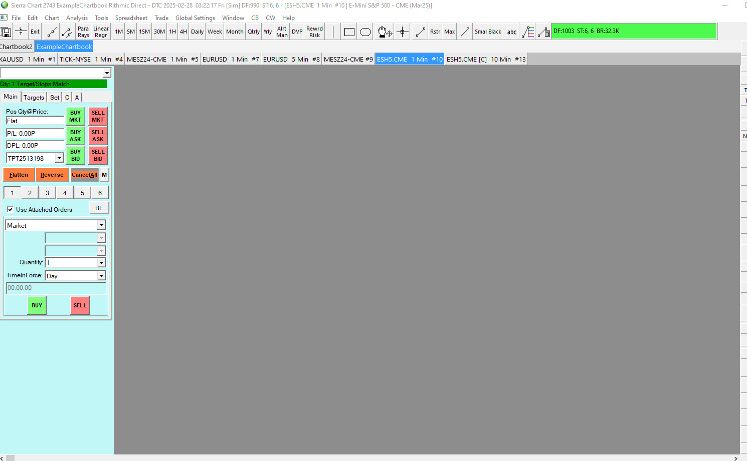 One thing we see is that you have some charts with incorrect symbols for Rithmic. Rithmic cannot handle symbols that they do not recognize, therefore you either need to change the symbols or remove them. To start, you should have your chartbook open and select "Edit >> Translate Symbols to Current Service". This will update many of the symbols for what is needed for Rithmic (such as MESZ24-CME will change to MESZ4.CME). Note that in this particular case, Rithmic does not have data for old symbols, so you would actually need to remove this chart. But, there are other symbols such as EURUSD for which Rithmic does not have any data, so you need to remove those charts. Refer to the following for more information on this situation: Rithmic Trading Platform Service: Frequent Reconnections For the most reliable, advanced, and zero cost futures order routing, use the Teton service: Sierra Chart Teton Futures Order Routing |