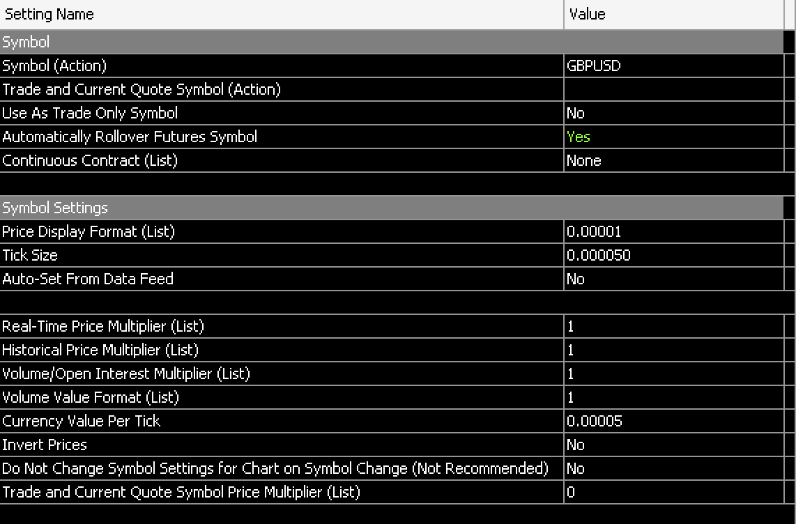 ok, to avoid confusion on my part, when I choose my currency pair in chart settings, do I need to change any futher settings in the attached, or are they automatically set for the selected symbol?