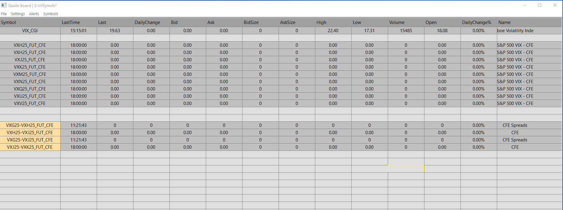 It would also be nice if the Quoteboard could show prices for the ICEUS Exchange (Cocoa/Coffee as in CCK25-ICEUS). Nothing is ever shown, Last, High, Low etc is always either 0 or 0.0. |