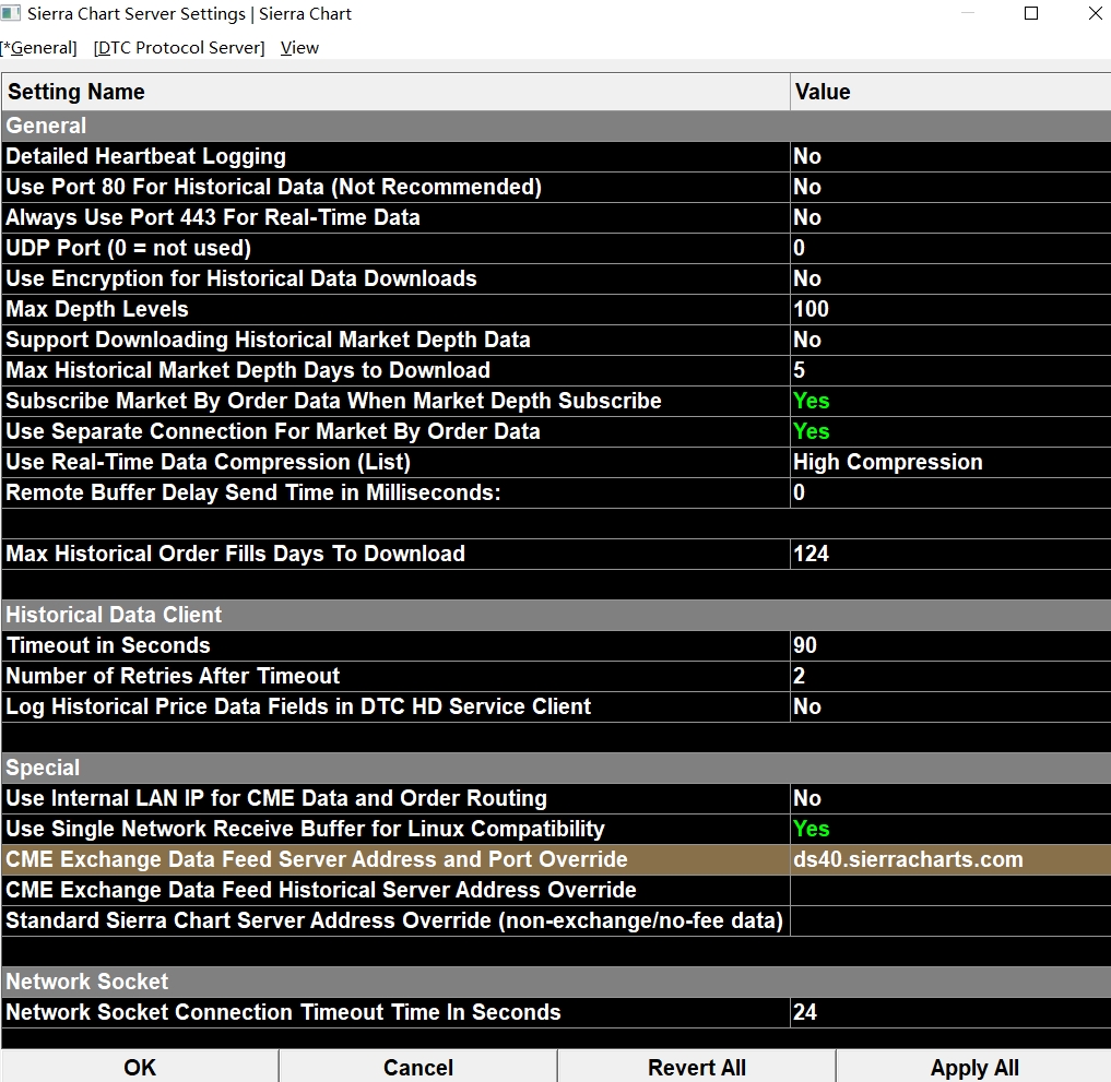 Use our New Zealand server for CME Group real-time data. Details are here: Sierra Chart Server Settings: CME Exchange Data Feed Server Address and Port Override (Global Settings >> Sierra Chart Server Settings >> General >> Special) This is the ping time to your IP from our NZ server: Pinging 209.97.160.90 with 32 bytes of data:
