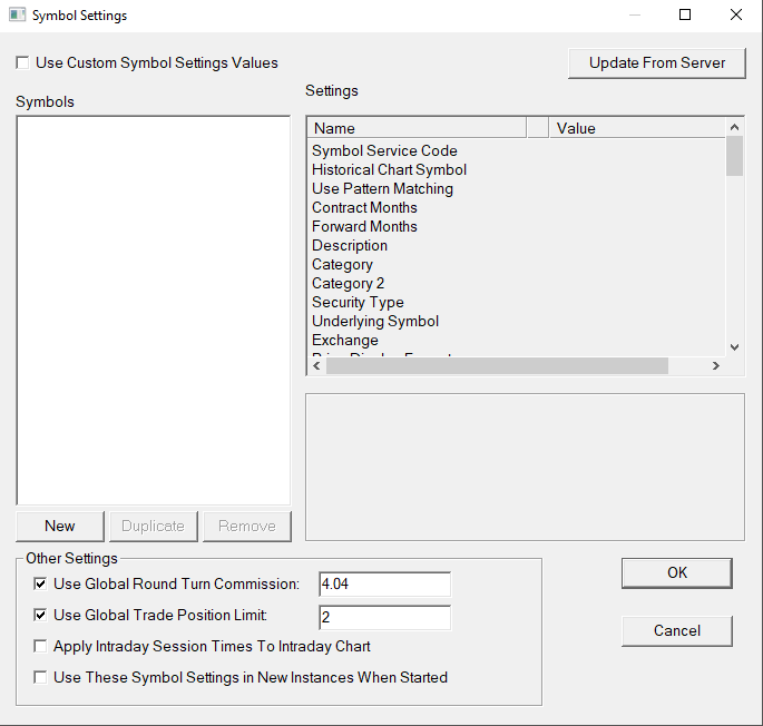 Hello, after a power outage I am no longer receiving data, I guess because no symbols are present. When I open Global Settings->Symbol Settings, no symbols are present. "Use Custom Symbol Settings Values" is not checked, and I have deleted the custom symbol settings file as an extra measure. When I click Update From Server, the log shows that symbols were requested and received, yet nothing is updated. I have also updated to the latest version of Sierra, and have restarted it multiple times after trying to update symbol settings. Please advise at your earliest convenience. |